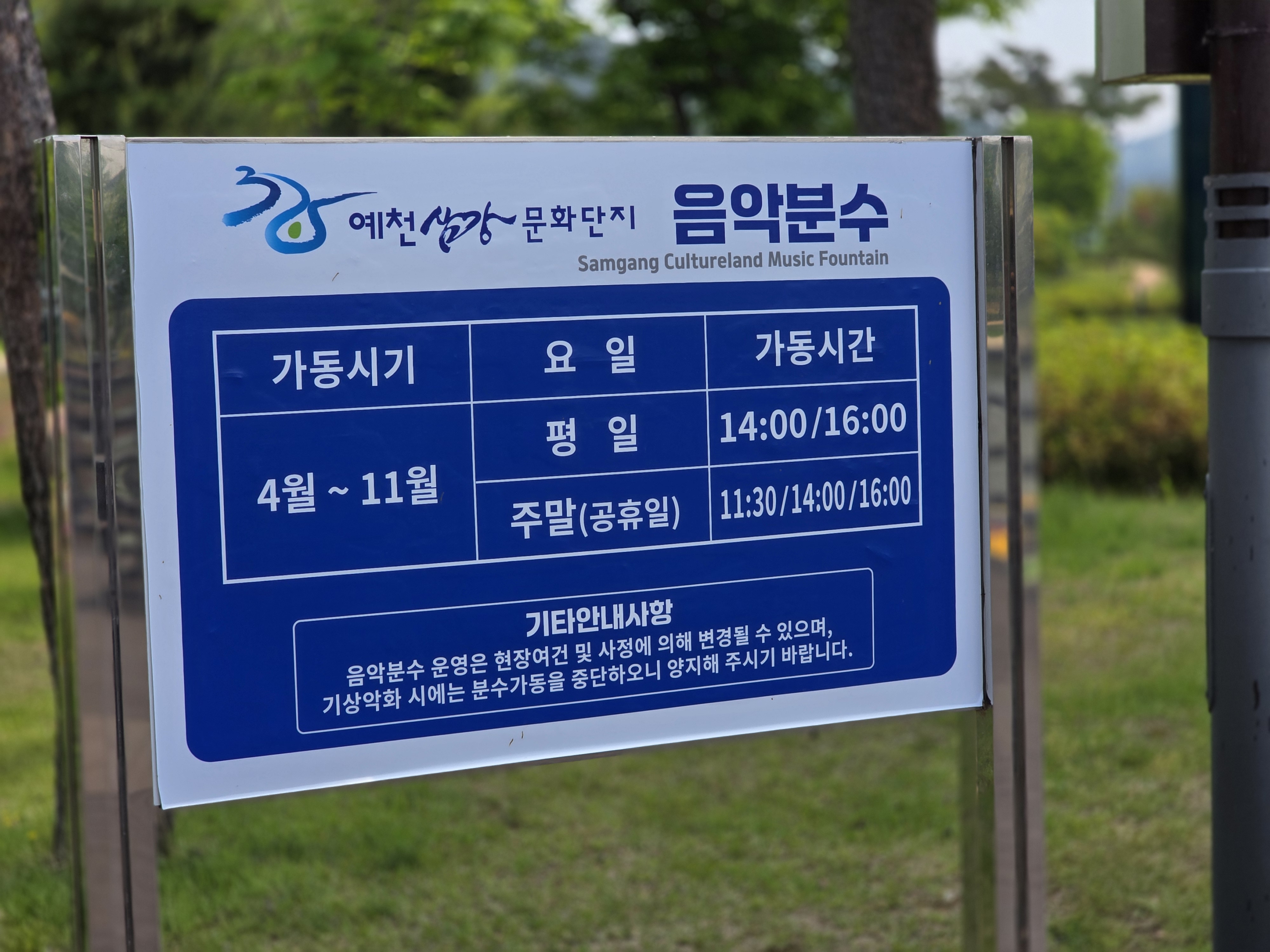강문화전시관 앞에 있는 분수에서 음악분수가 열린다고 합니다. 4월부터 11월까지 열리며 평일과 주말에 정해진 시간에 열리므로 시간에 맞춰 방문하시면 음악분수도 보실 수 있겠습니다.