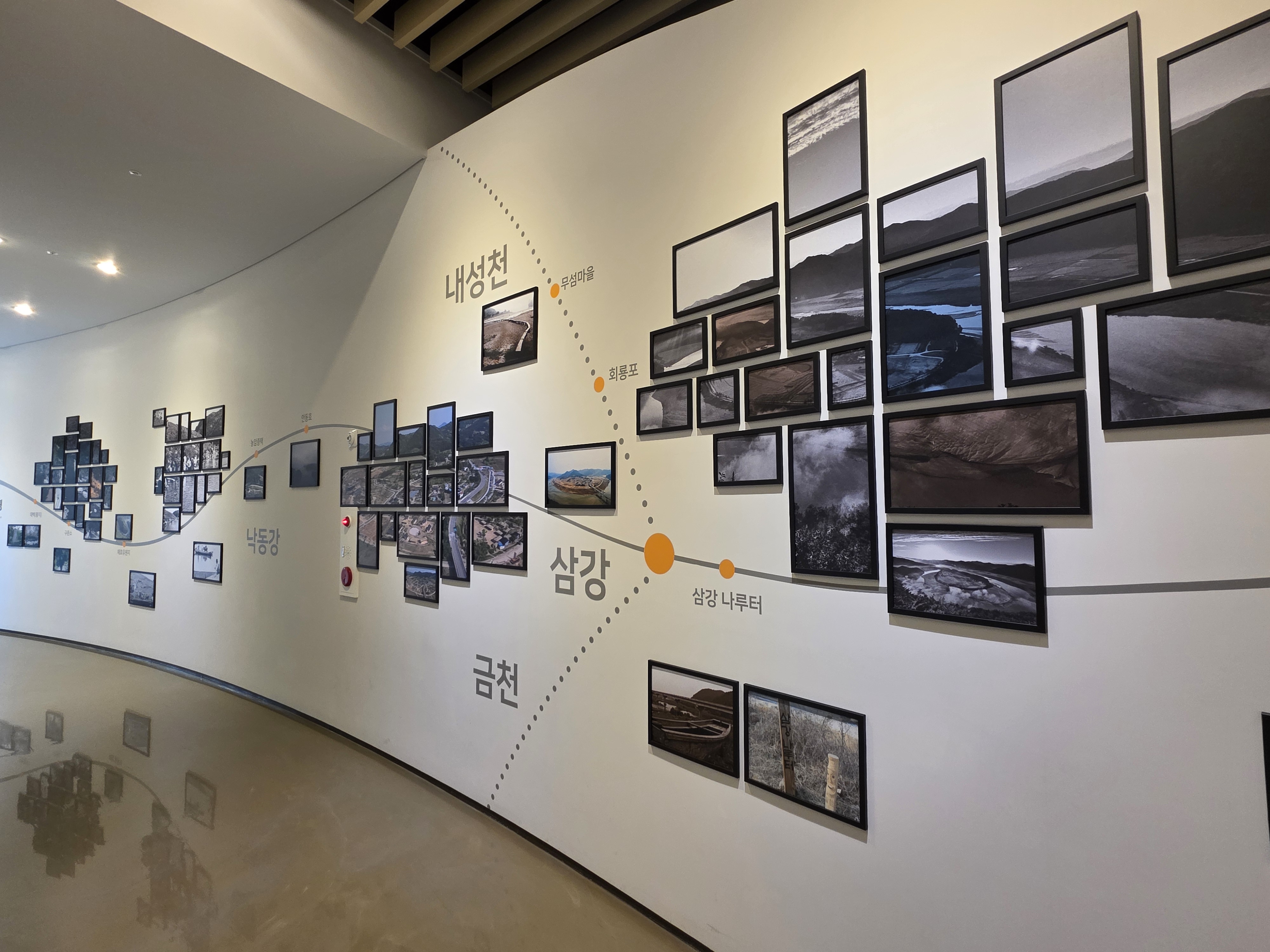 전시실 동선의 끝에는 삼강으로 이어지는 벽면 길을 따라 다양한 사진 자료들이 전시돼 있는데 개인적으로 좋아하는 공간입니다. 멋진 사진들과 쉽게 볼 수 없는 옛날 사진 들을 많이 볼 수 있습니다.