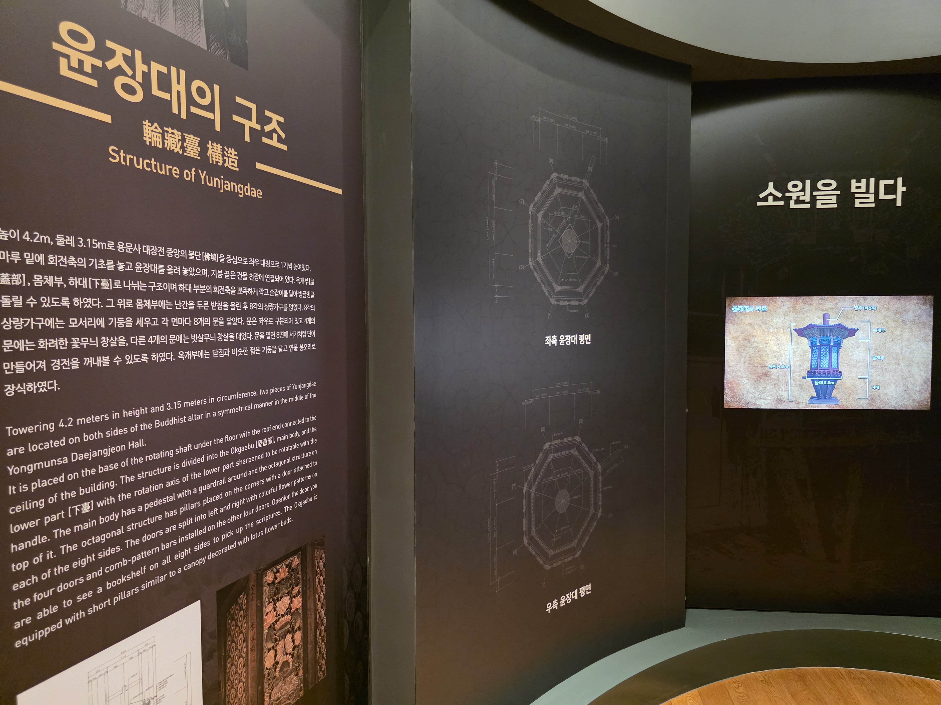 실제로 소원지를 적고 소원을 빌어볼 수 있는 윤장대에 대해 자세한 학습이 가능합니다. 다른 나라의 기도바퀴에 대한 문화도 확인할 수 있어서 유익했습니다.