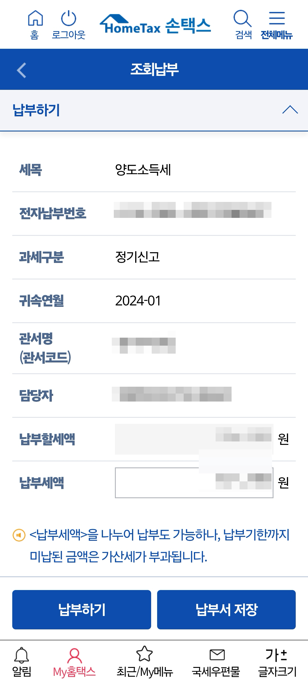 이미 세무법인을 통해 양도세 신고가 되어있는 상태로 5월을 맞이하기 때문에 신고 자체는 생략되고 납부만 하면 된다. 납부는 쉽다.