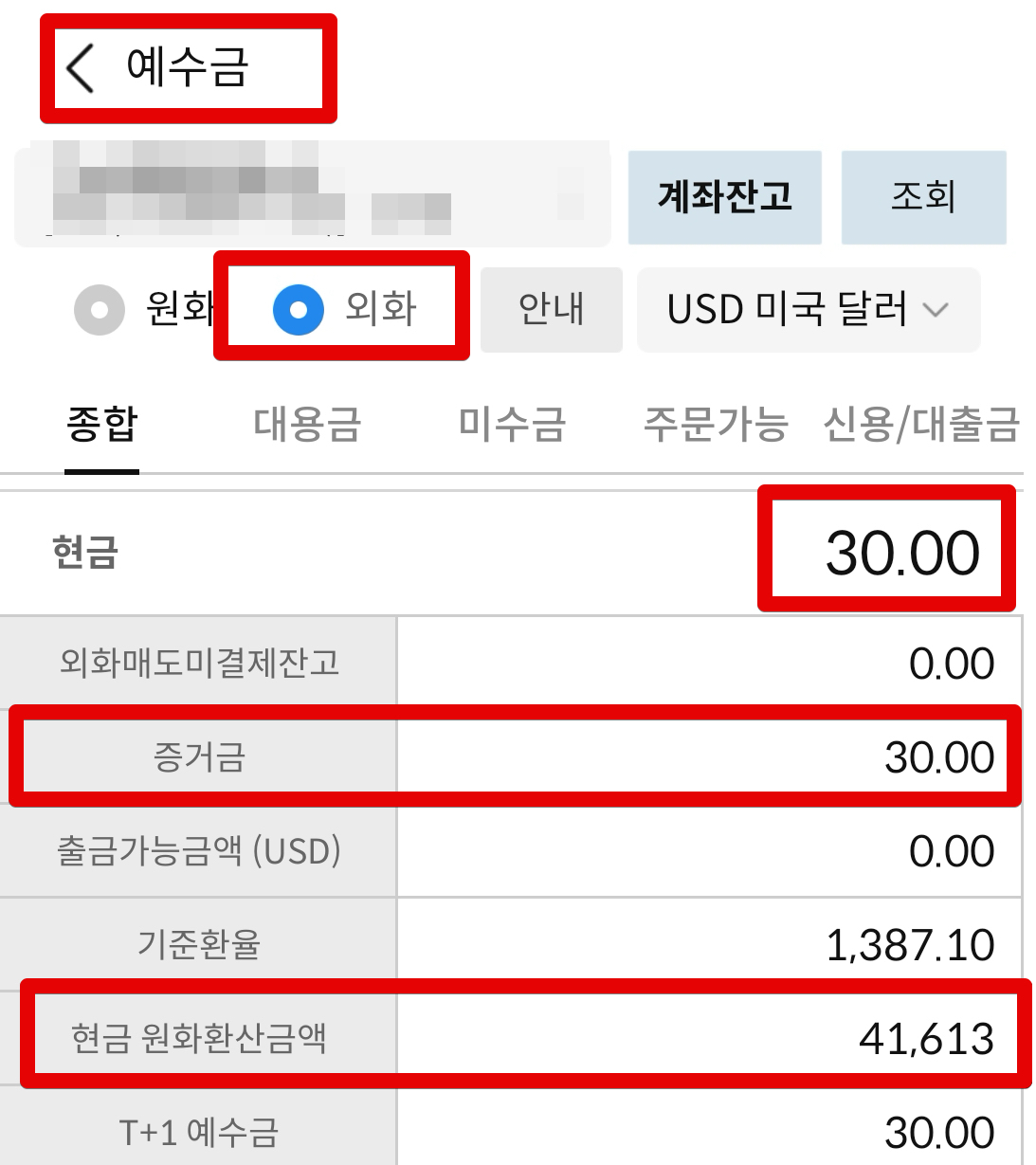 해당 이벤트 신청 이후 해당 계좌에서 예수금을 조회해본다. 외화 예수금쪽에서 증거금으로 30불이 잡혀있는걸 볼 수 있다. 현재 환율 기준으로 4만원 돈이다! 4만원 돈 얼마 안된다고 생각할 수 있지만... 나에겐 큰 돈이다...ㅋㅋ