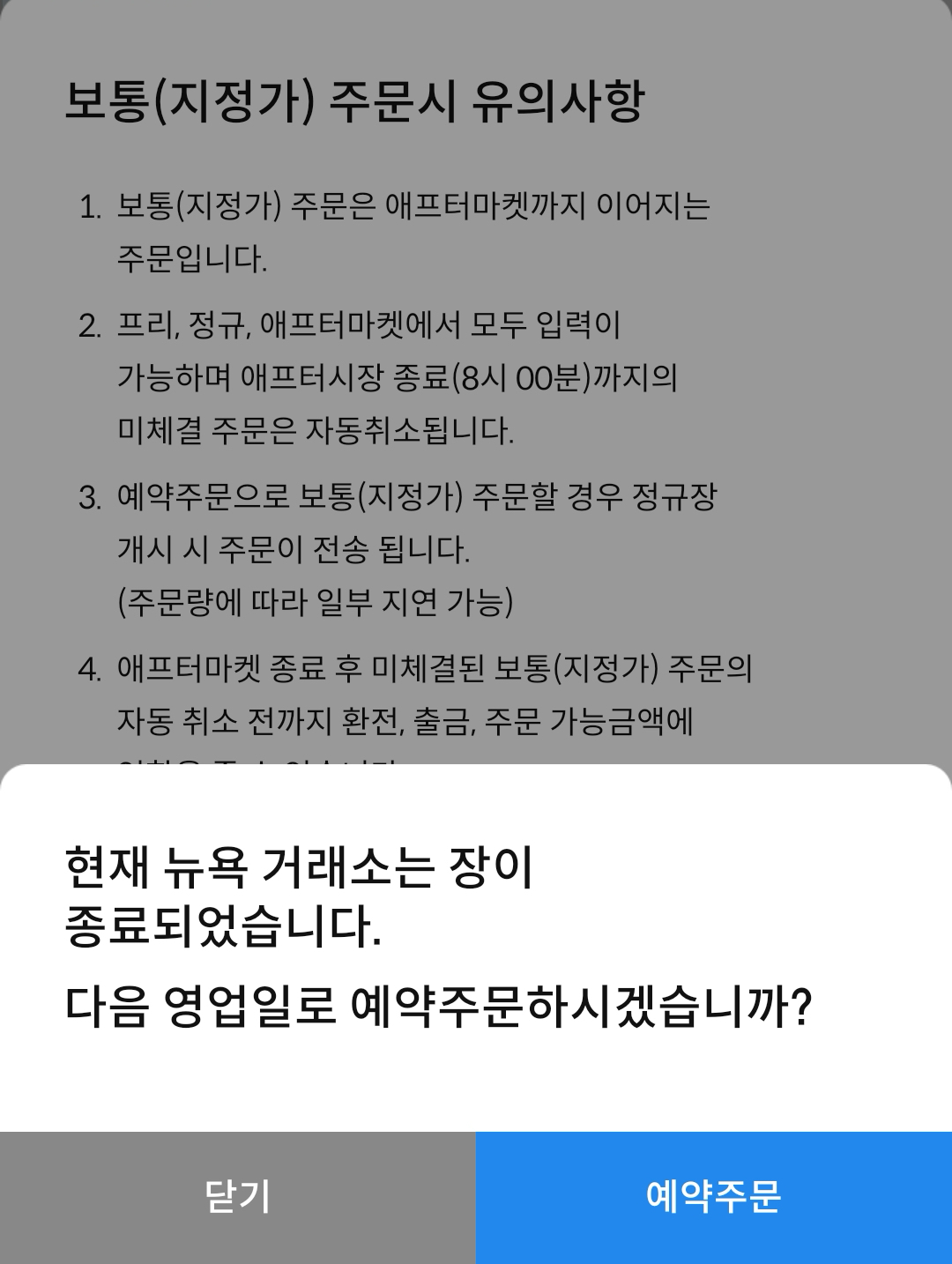2024년 연말이었나.. 이후 미국주식 주간거래가 가능한 종목이 있고 아닌 종목이 있는걸로 알고 있다. 삼성증권에서는 뉴욕거래소의 경우 주간거래가 안되는 것 같다. 예약주문을 걸어야한다. 예약주문의 경우 지정가로 주문하면 되며 지정가 주문시 정규장으로 주문이 들어간다.
