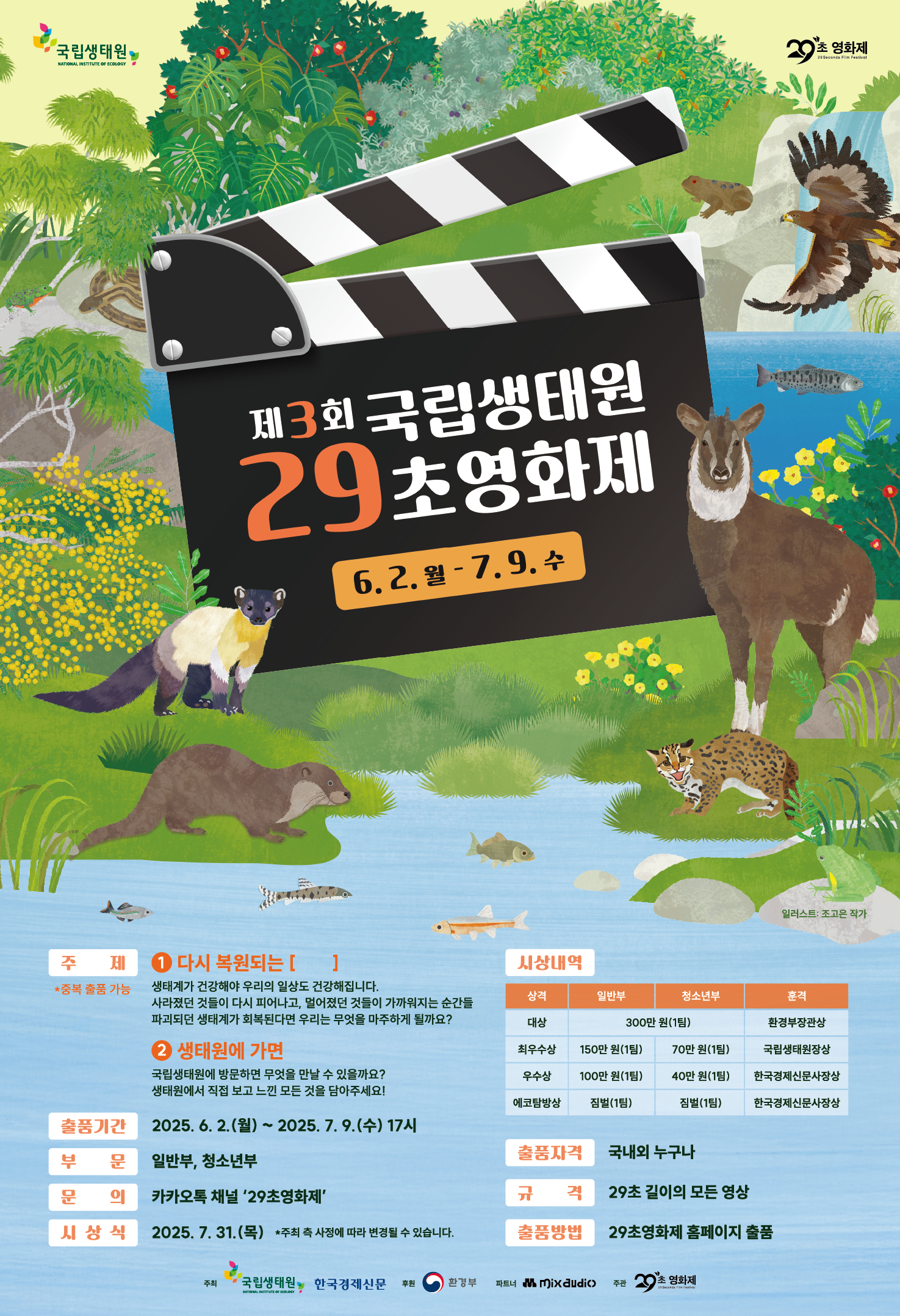 일상에서 마주하는 자연의 회복, 그리고 생태계 복원의 중요성을 담아내는 다채로운 29초 영화를 만들어보세요. 이번 영화제에는 ‘에코탐방상’이라는 상격도 특별히 신설되었다고 합니다!
