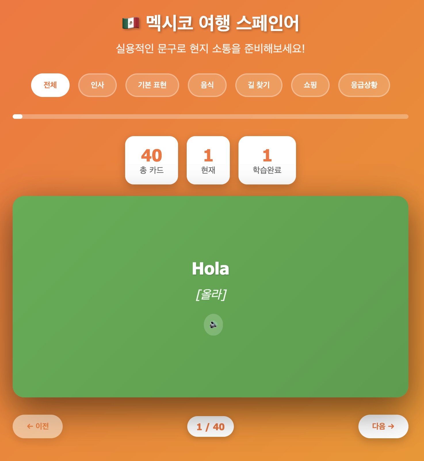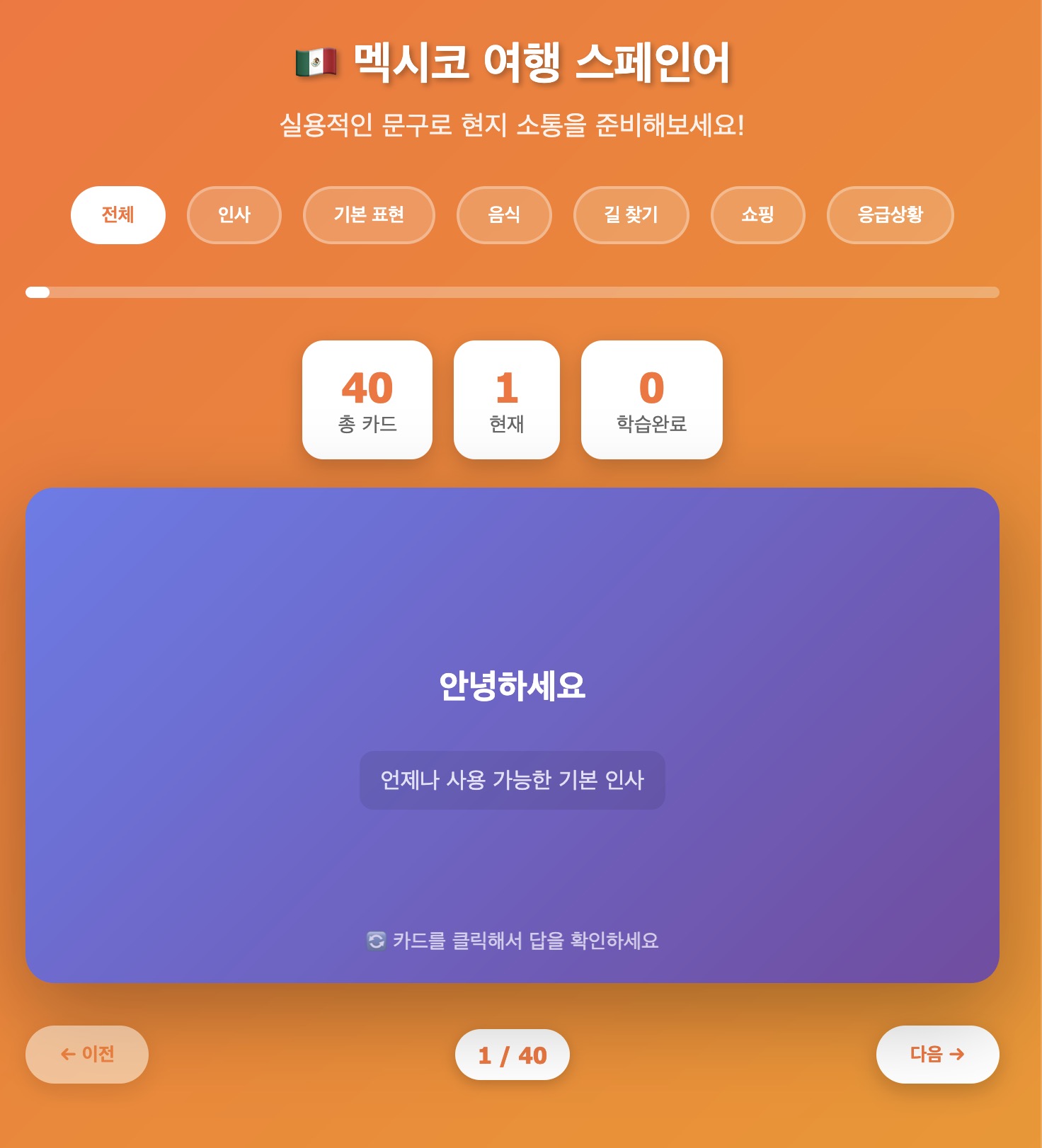 프롬프트: 멕시코 여행을 위해 일상적인 스페인어 문구를 배우는 데 도움이 되는 플래시 카드를 만들어주세요.