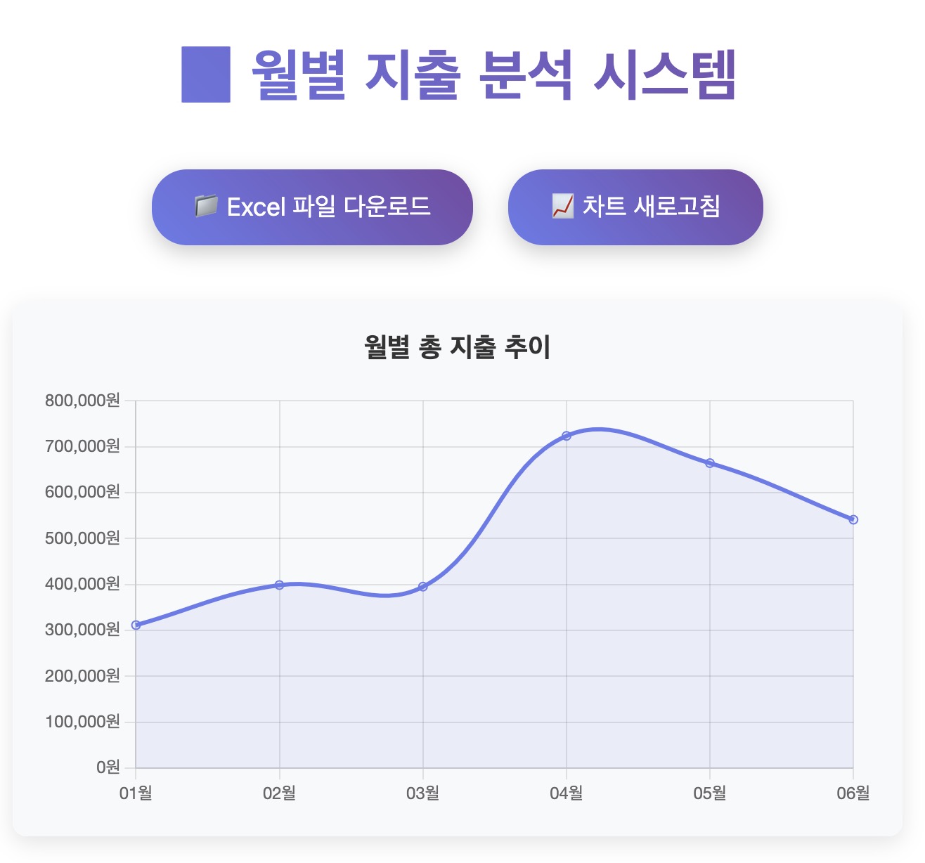 프롬프트: 내가 가지고 있는 CSV 파일을 활용해 월별 지출을 비교하는 차트를 만들어주세요.