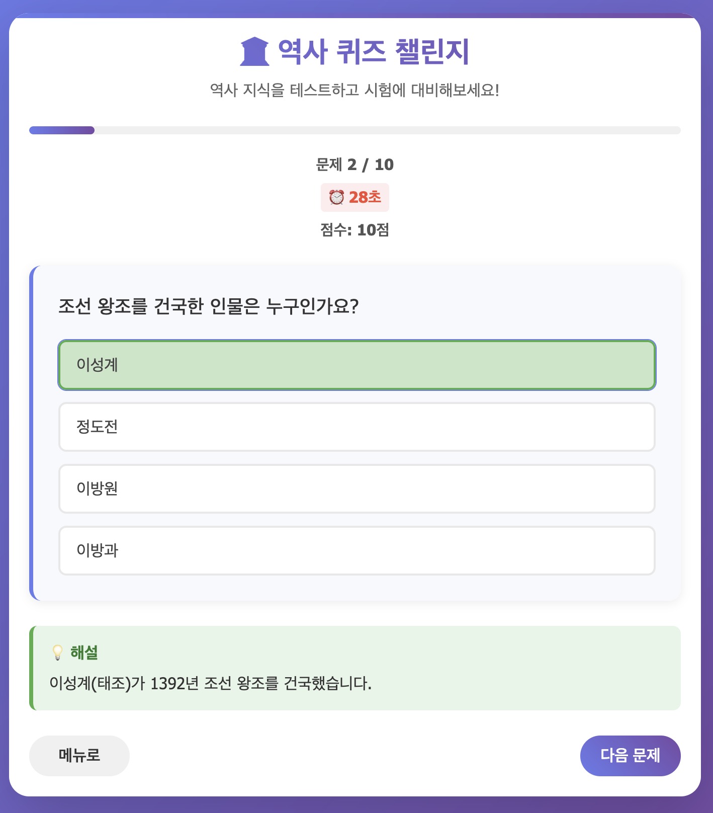 프롬프트: 다가오는 역사 시험을 위해 연습하는 데 도움이 되는 대화형 퀴즈를 만들어주세요.