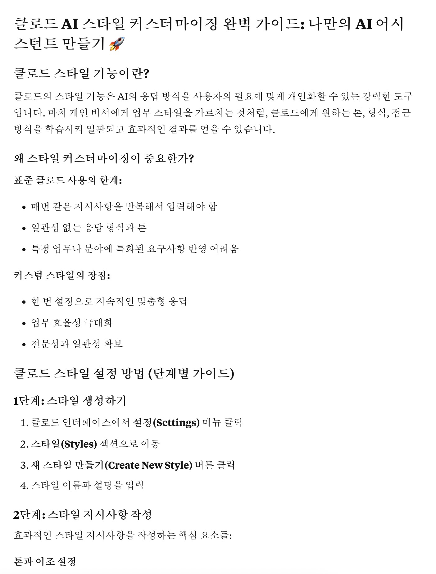 생성형 AI 클로드 스타일 구성으로 커스텀해서 사용하는법