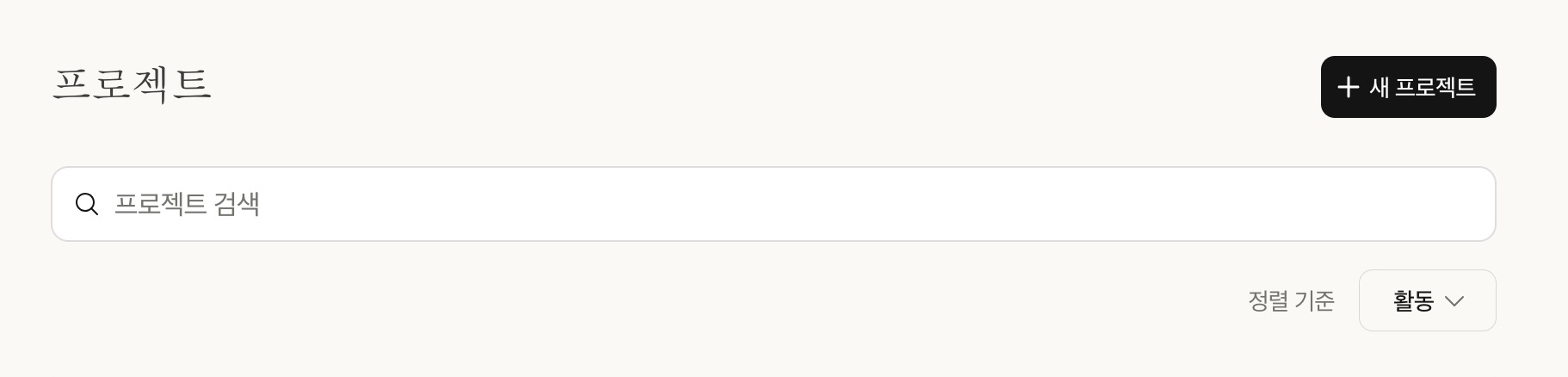 프로젝트를 검색하는 기능과 <새 프로젝트> 버튼을 이용해서 프로젝트를 만드는 기능이 있다. 처음에는 새로운 프로젝트를 만들어서 시작하면 된다.