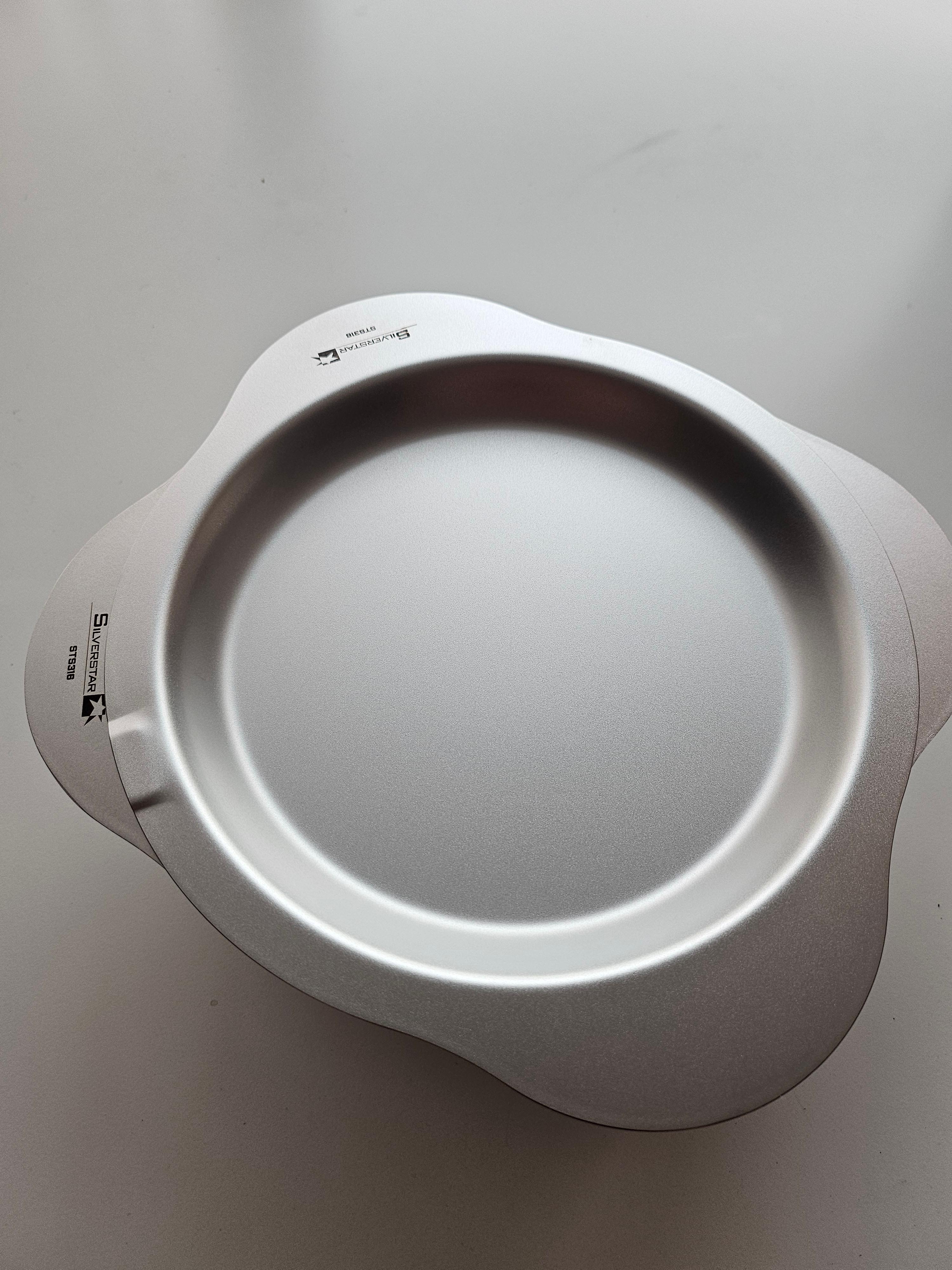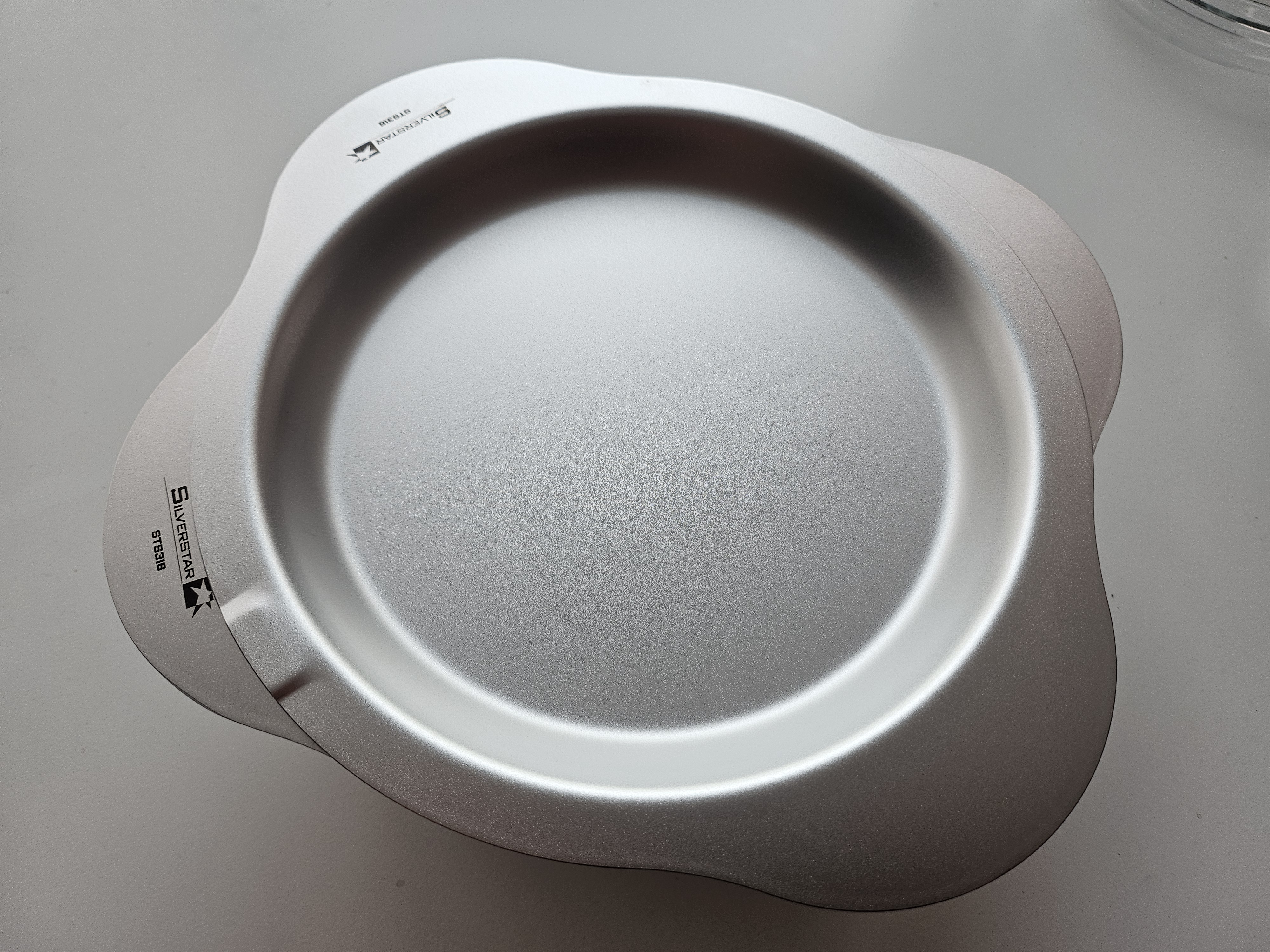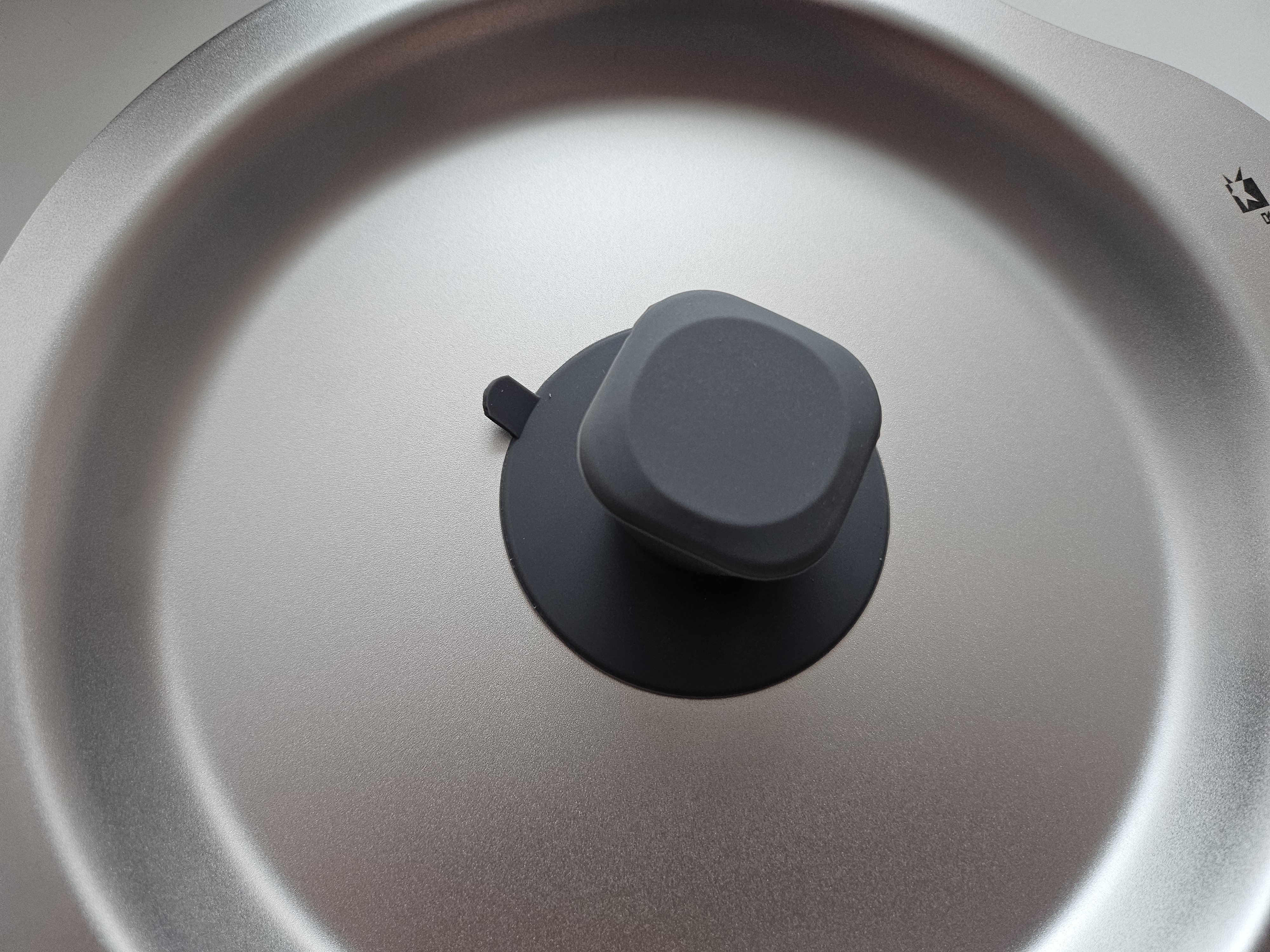 뚜껑 덮은 모습의 실버스타 무연마제 제품. 일단 스텐이라서 거의 반영구적으로 쓸 수 있을거라고 생각된다. 더불어 무광이라서 오래도록 질리지 않고 쓸 수 있을 것 같고 디자인도 특별한건 아니지만 나름대로 예뻐보인다. 뚜껑 디자인이 특이한데 뚜껑 자체가 하나의 플레이트이고 요리도 가능하다는 내용이 있었지만, 그릇으로 쓰면 몰라도 굳이 여기에 요리까지 할 필요성이 있을까에 대해서는 아직 의문이긴 하다.