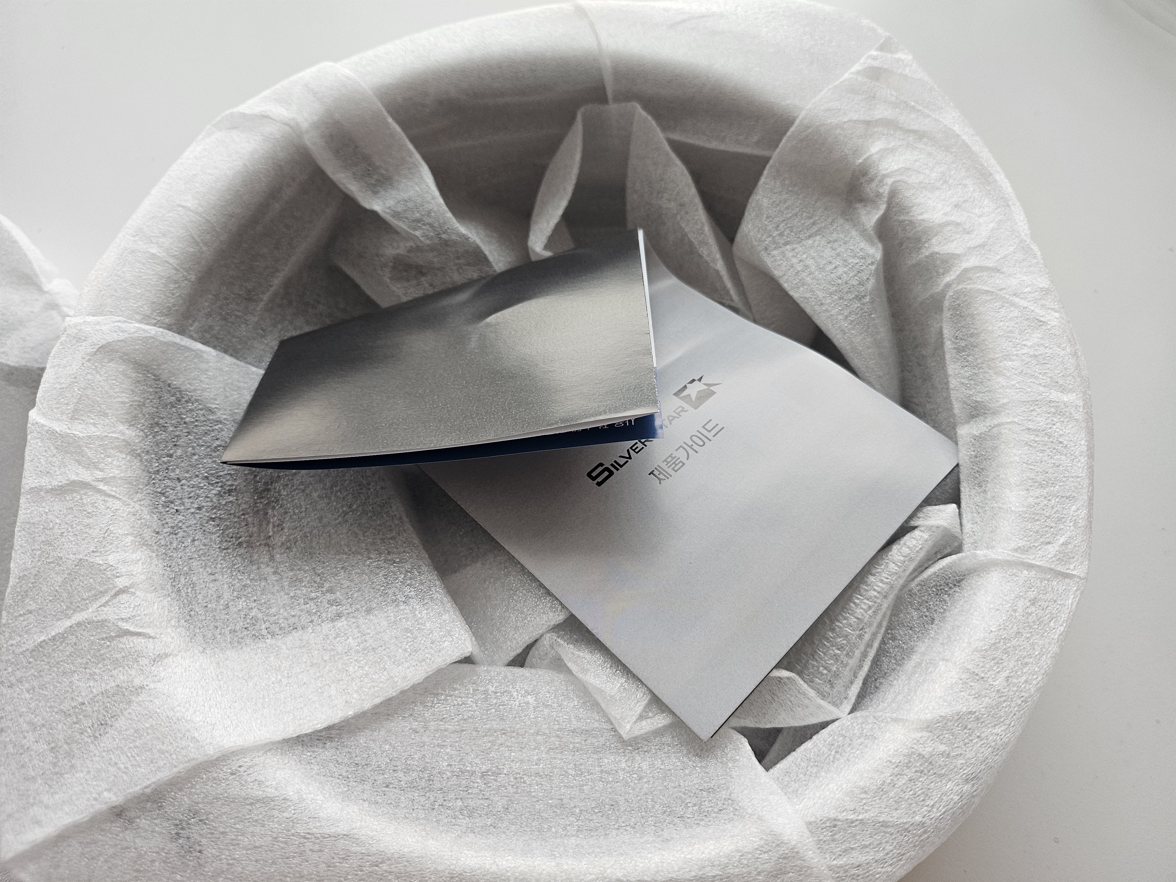 통주물 스타일이라서 따로 플라스틱 등으로 된 손잡이가 있는게 아닌 냄비라서 별도로 이렇게 실리콘 손잡이를 따로 주는데 이것만 단독으로 쓰기에는 좀 위험할 것 같고, 장갑 끼고 손잡이까지 껴서 들어올리거나 해야할 듯 하다. 잘못하면 화상 입을수도 있다. 이건 다소 번거로운 부분이긴 한데, 이러한 단점을 뛰어넘을만큼 무연마제 + 통주물 스타일은 장점이 더 크다. 설거지도 쉽다.ㅋㅋ