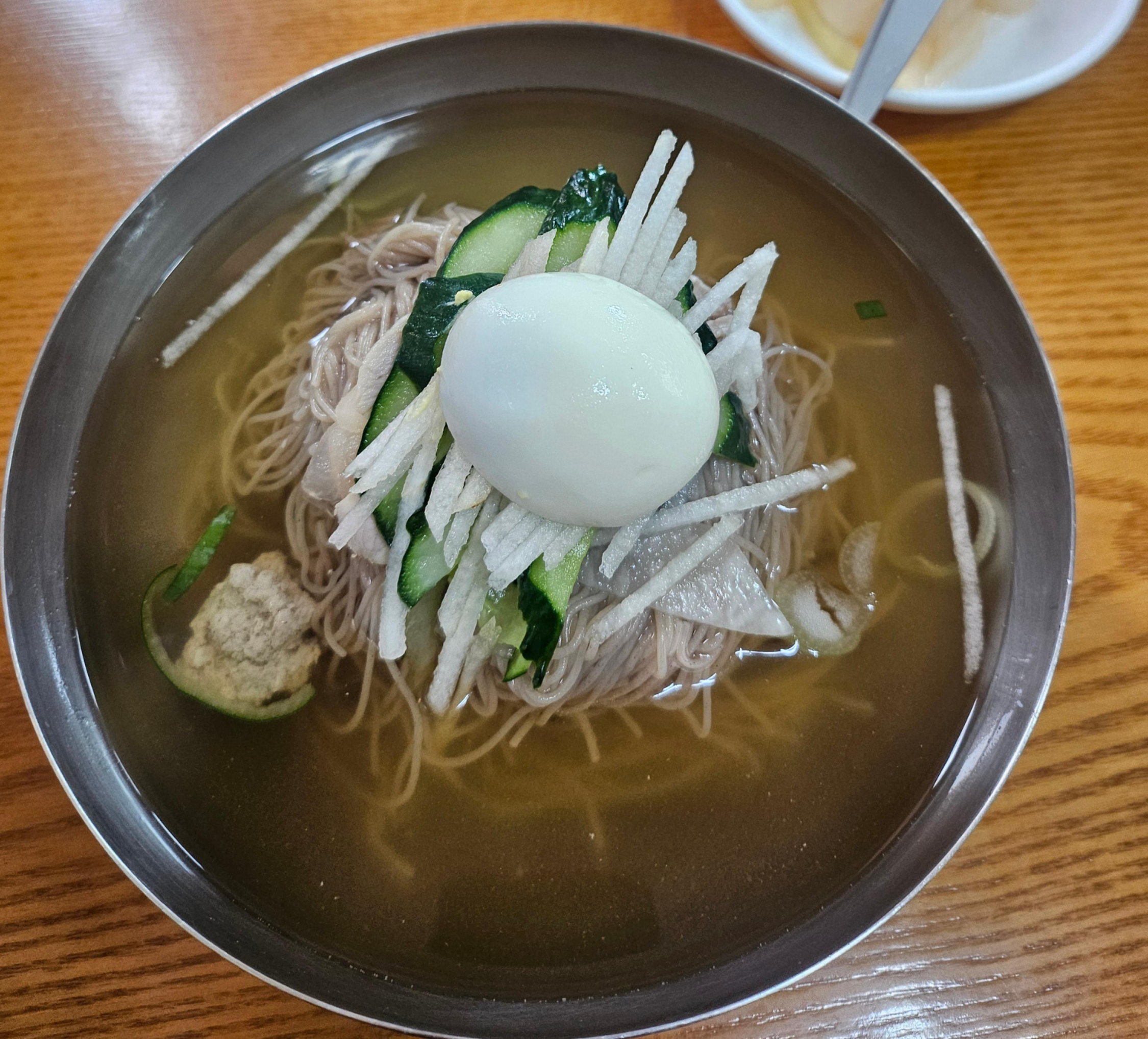 이 날은 좀 정신없어서 사진을 2장 밖에 안찍었네... 다음번에 가면 여러개 찍어야겠다. 다음번에 또 갈 의향 있다. 전체적으로 맛이 괜찮고 평양냉면 특유의 그 슴슴함도 꽤 덜한 편이었다. 개인적으로 만족하는 수준. 기본으로 어느정도 간이 되어 있는 국물 베이스이고 양도 정말 많은 편! 사이드 안먹고 냉면만 먹어도 진짜 배부르다 ㅎㅎㅎ