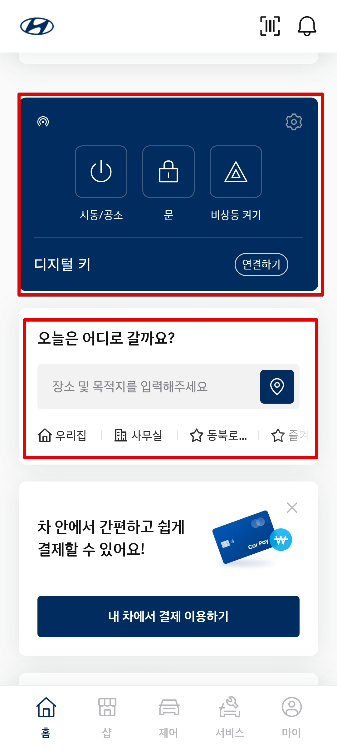 시동걸기, 문잠그기, 디지털키, 지도 검색