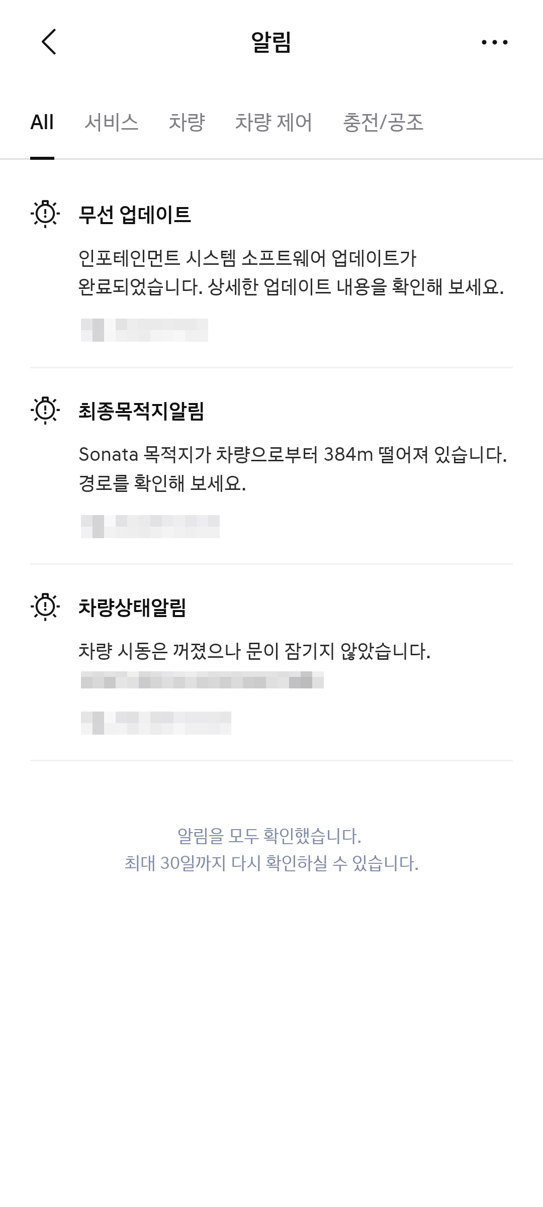 알림창에서는 최근 알림들을 볼 수 있다. 알림 설정도 가능한데 주로 차량 알림 위주로 살펴보면 될 것 같다. 마케팅 알림 등은 모두 꺼버렸다.