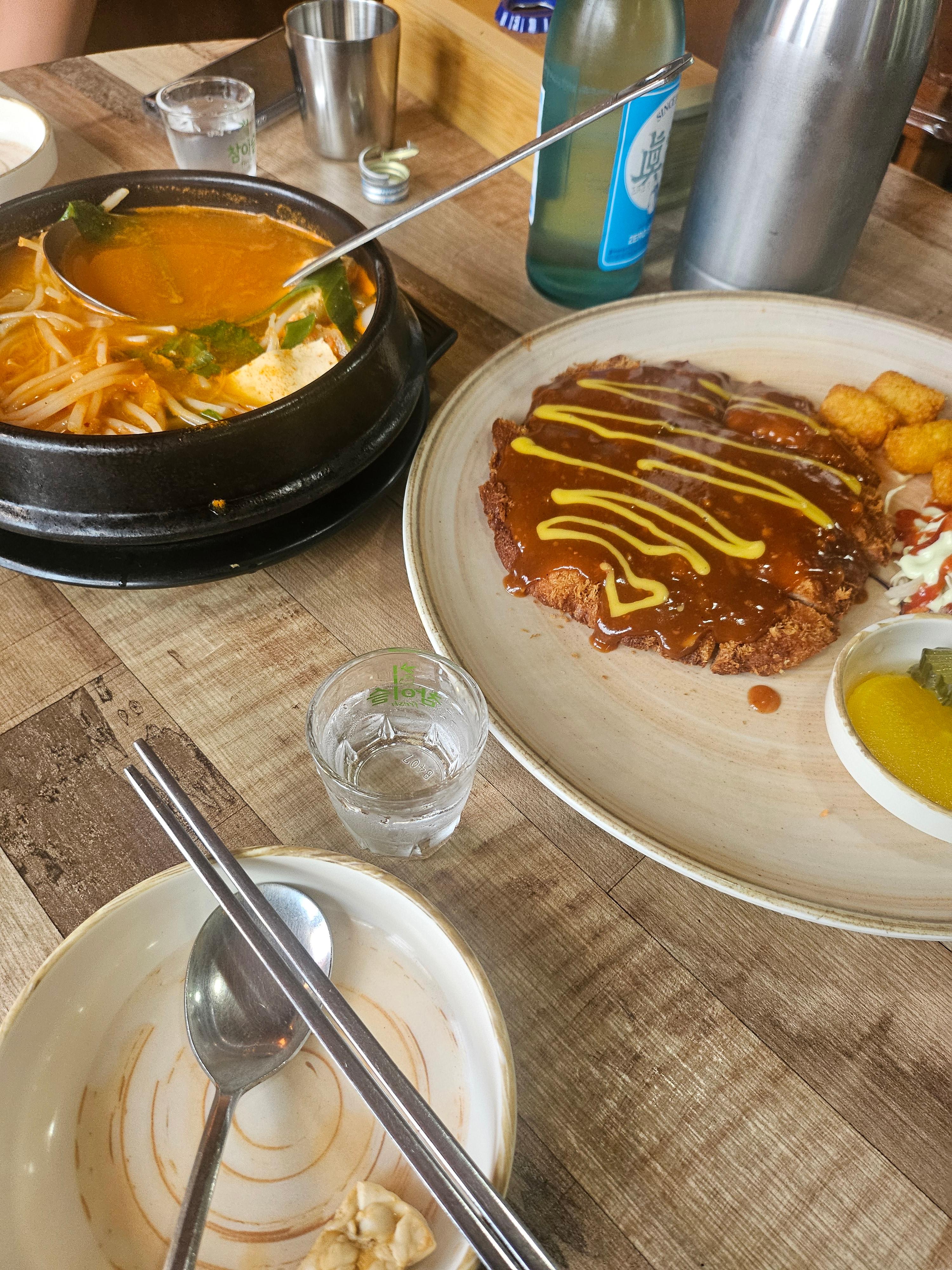 돈까스 하나, 알탕이었나...? 무슨 탕 하나 시켰고 두 명이서 소주 3병인가 깠다.... ㅋㅋㅋ 이런 술집들에서는 보통 돈까스나 치킨 같은게 존맛 메뉴인 경우가 많다. 그리고 존맛이었다...ㅋㅋ 다먹고 2차갔는데 시간이 저녁 8시쯤이었고 어둑어둑해지고 있었다.ㅋㅋㅋ