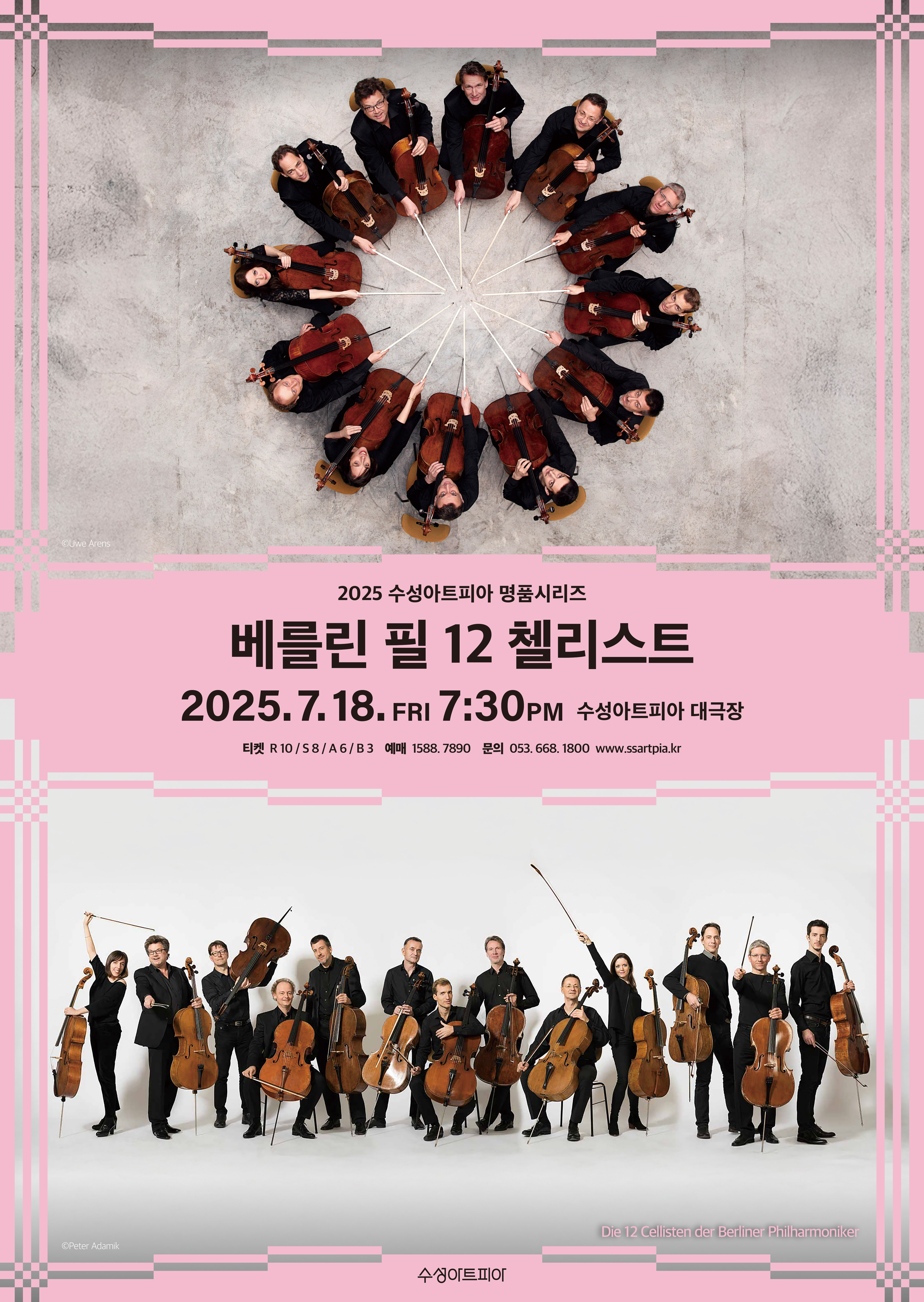 2025 수성아트피아 명품시리즈로 기획된 베를린 필 12 첼리스트 공연을 소개합니다. 처음에 해당 내용을 보고서 "첼로만으로 정말 완벽한 하모니가 가능할까?"라는 생각을 하게 되어서 조금 더 찾아보았습니다. 처음엔 의구심이 들었어요. 그런데 베를린 필 12 첼리스트의 연주를 유튜브에서 찾아보니 영상이 몇 개 있더라고요. 직접 보면 그런 의문이 싹 사라질 것 같습니다. 그들의 대답은 아주 명확했습니다.. "당연히 가능합니다!!"