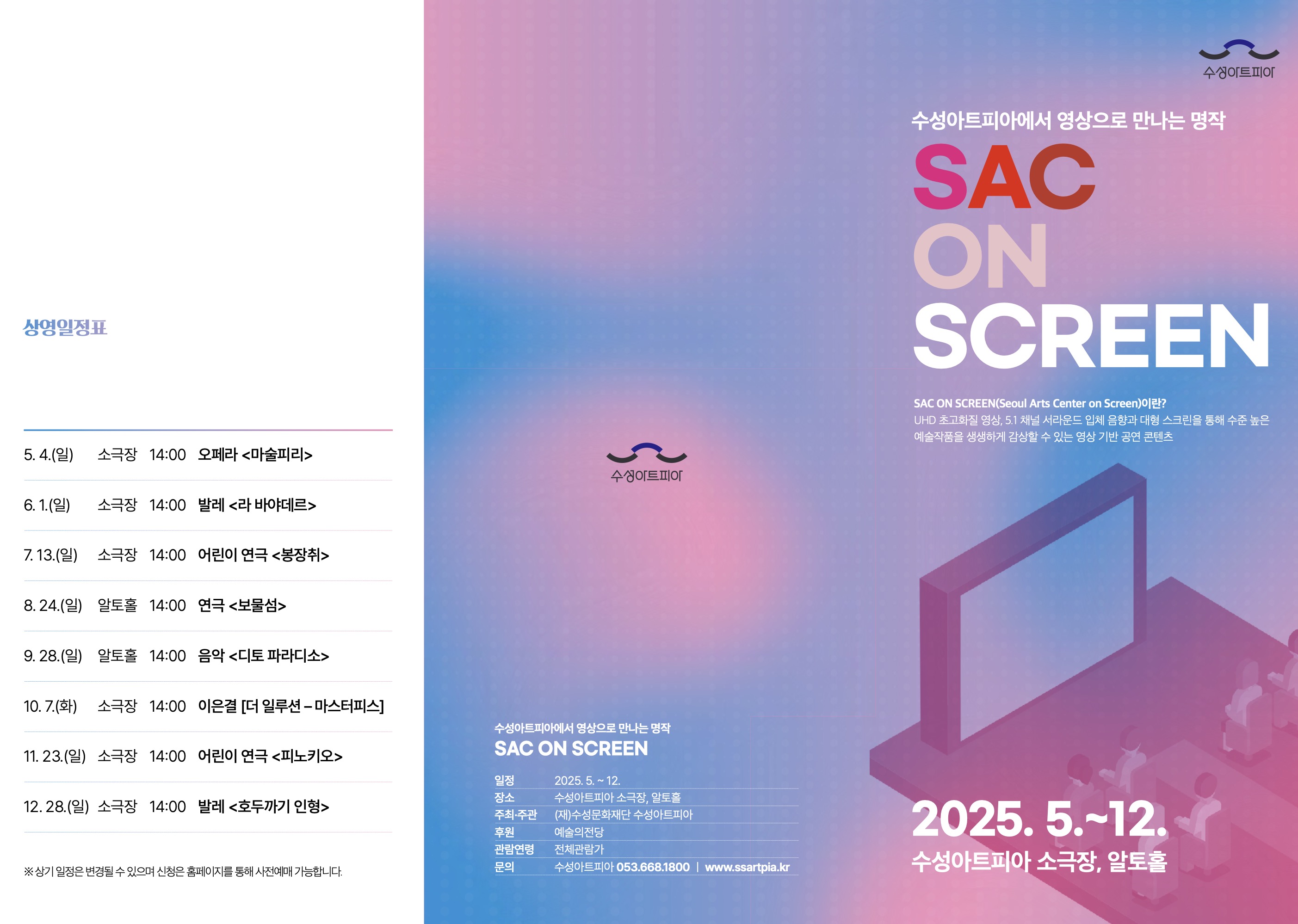 명작들을 수성아트피아에서 대형 스크린으로 만나보세요! SAC ON SCREEN