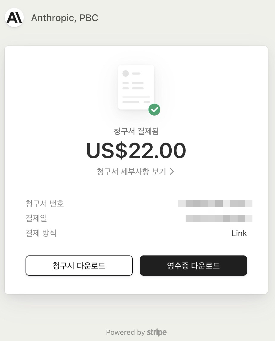 내가 유료결제로 직접 이용하고 있는 클로드 AI를 기준으로 알아보자. 해외결제 서비스를 결제하는 가장 간편한 방법은 홈페이지에서 결제창을 이용하는 방법이다. 이렇게하면 해외결제가 가능한 신용카드(마스터카드 등)를 이용해 손쉽게 결제할 수 있다. 해외결제이므로 수수료가 조금 들어가긴 하지만 감수할만하다고 생각한다. 문제는 사업자 입장에서 업무용으로 AI를 쓰고 있다고 할 때, 충분히 소명이 가능하고 업무 연관성도 제시할 수 있지만, 세금처리 부분에서 중요한 영수증이 없다는점이다.