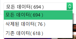 모든 데이터가 아니라 삭제된 데이터만 보고 싶다면 상단에 있는 모든 데이터를 클릭한 후 삭제된 데이터로 바꿔주세요.
