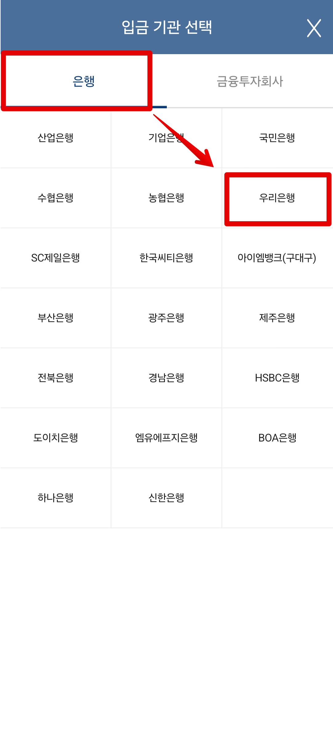 [외화이체(타사)] 메뉴에서 입금 기관을 [은행]을 [우리은행]으로 선택한다. [외화이체(타사)] 메뉴가 떠 있는지 확인한 후 영문계좌명과 출금가능외화, 출금가능금액과 출금금액 등을 지정한다. 아래쪽에 [지정계좌] 버튼을 클릭해보면 우리은행의 외화가상계좌가 미리 등록돼 있을 경우 지정계좌에도 나타나서 바로 선택할 수 있도록 하고 있다.