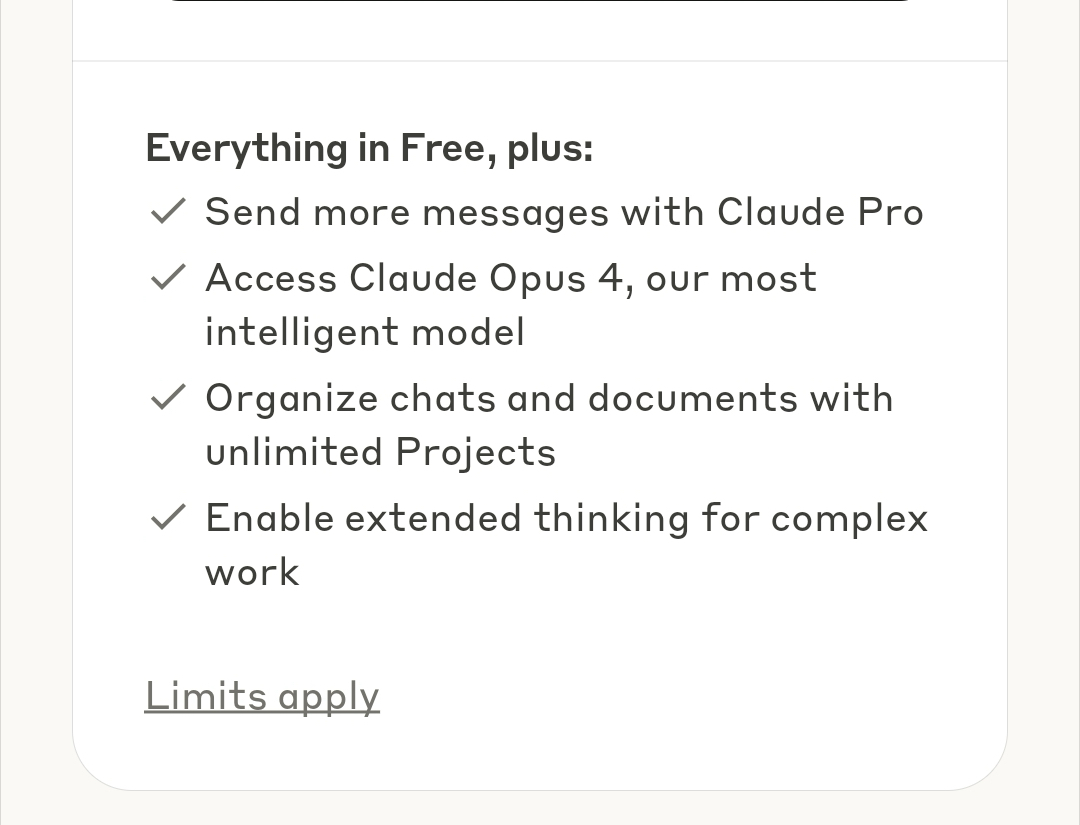 클로드를 유료 결제하면 프로 플랜을 쓸 수 있고 프로 플랜은 위와 같은 기능을 이용할 수 있다.