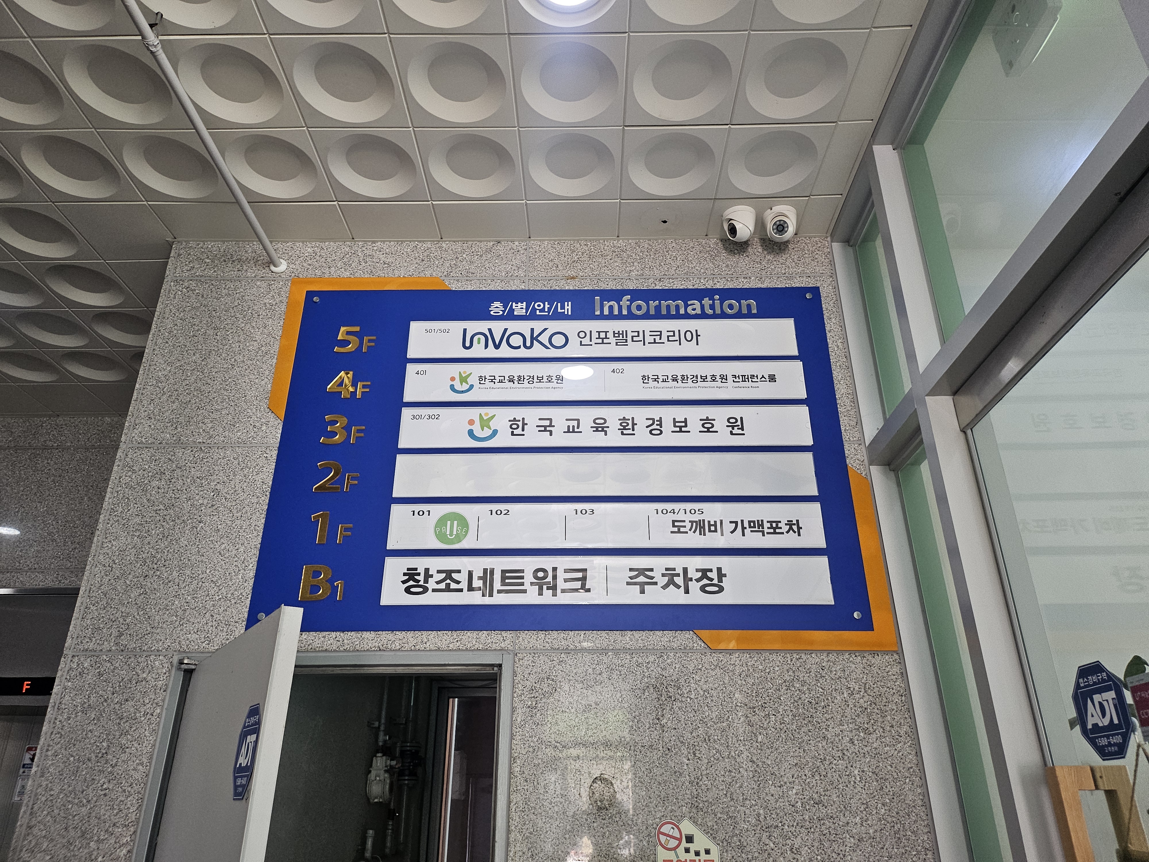 건물 안에 3층에 한국교육환경보호원이 있고 4층에 컨퍼런스룸 시설 등이 있었습니다.