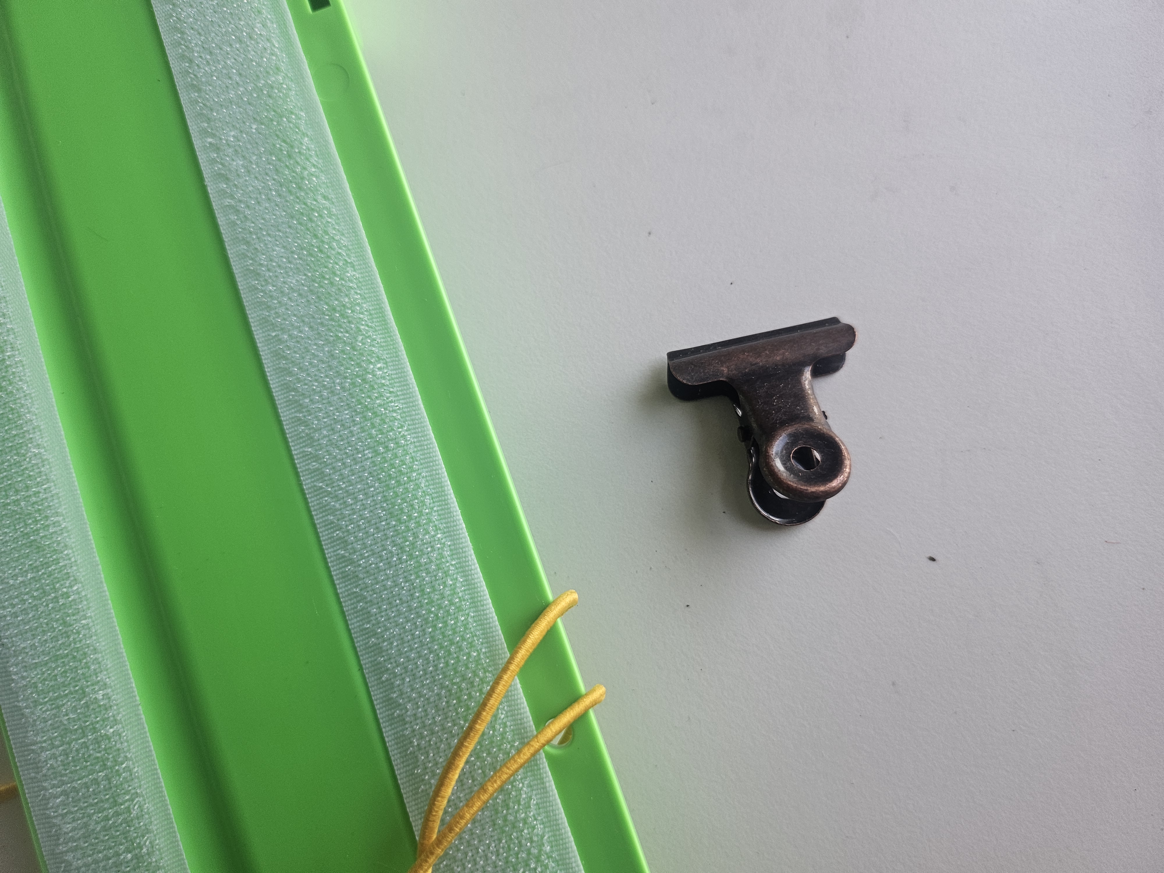 여기 위에 이렇게 찍찍이가 붙어있어서 이 찍찍이 위에다가 밀대를 붙여서 사용하는 방식이다. 제품 탈락을 방지하기 위해 고리를 함께 주므로 이 고리를 반드시 사용해야한다. 나의 경우 손목에 묶고 고리로 걸어서 떨어짐을 방지해두었는데 실제로 제품 테스트해보다가 바깥으로 떨어질 뻔했던적이 2번이나 있었기 때문에 사용법을 미리 숙지하고, 제품이 안떨어지게 잘 유도하면서 청소하는 스킬이 요구된다.