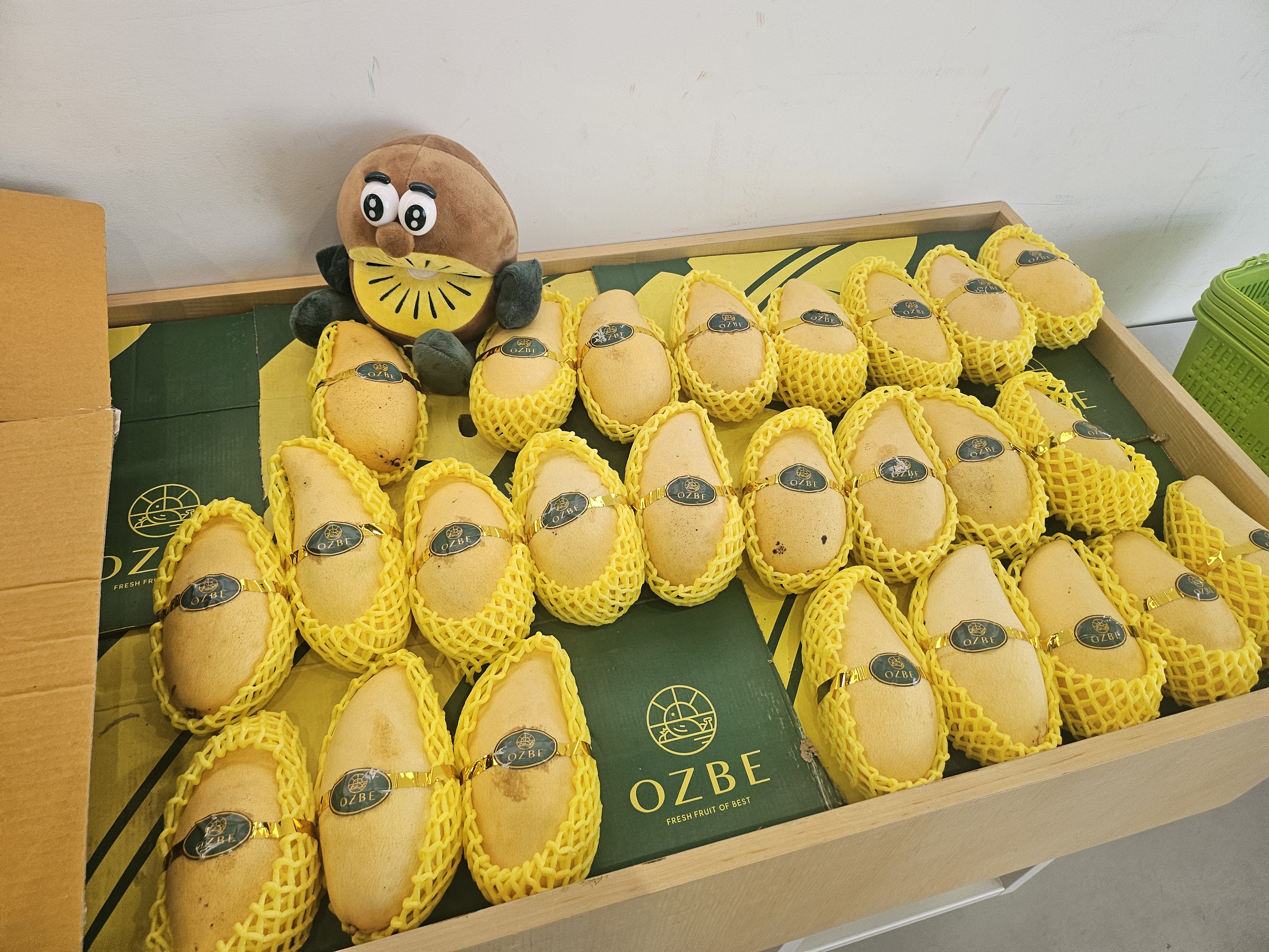 가게 한 켠에는 과일을 직접 살 수 있도록 배치해두어서 구경하기에 좋았어요. 오즈베의 가장 큰 매력은 역시 다양한 과일들인 것 같습니다. 계절마다 다른 신선한 과일들을 만날 수 있다고 하는데요. 제가 방문했을 때는 토마토, 수박, 망고, 메론 등 정말 많은 종류의 과일들이 있었어요. 보기만 해도 군침이 도는 싱싱한 과일들이 가득했답니다.