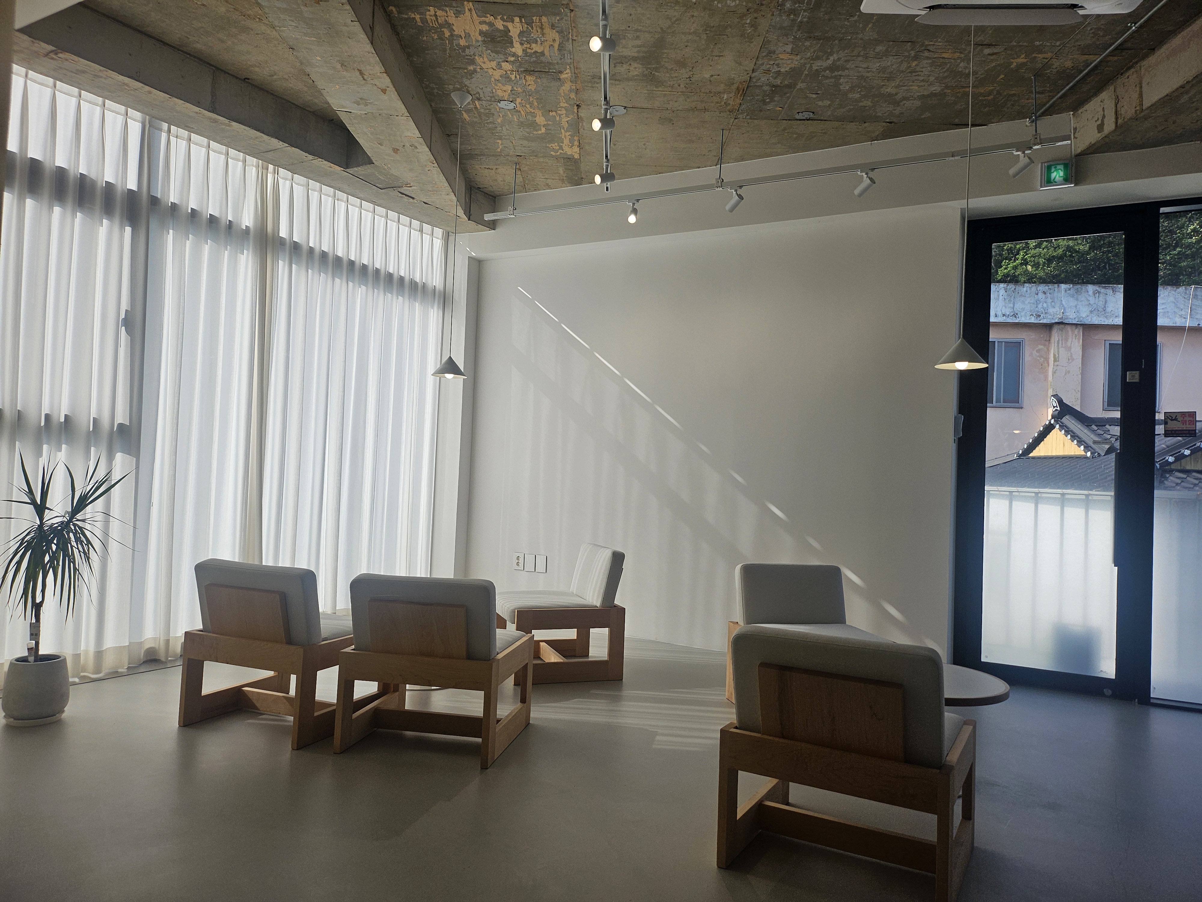 인테리어는 화이트 톤을 베이스로 하면서 포인트가 되는 컬러들을 사용한 스타일이었는데 예쁜 가구와 인테리어 소품인 조명 등이 있어서 볼거리였어요. 공간이 넓어서 답답하지 않고, 밝은 조명과 깔끔한 인테리어가 어우러져서 기분이 좋아지는 공간이었습니다.
