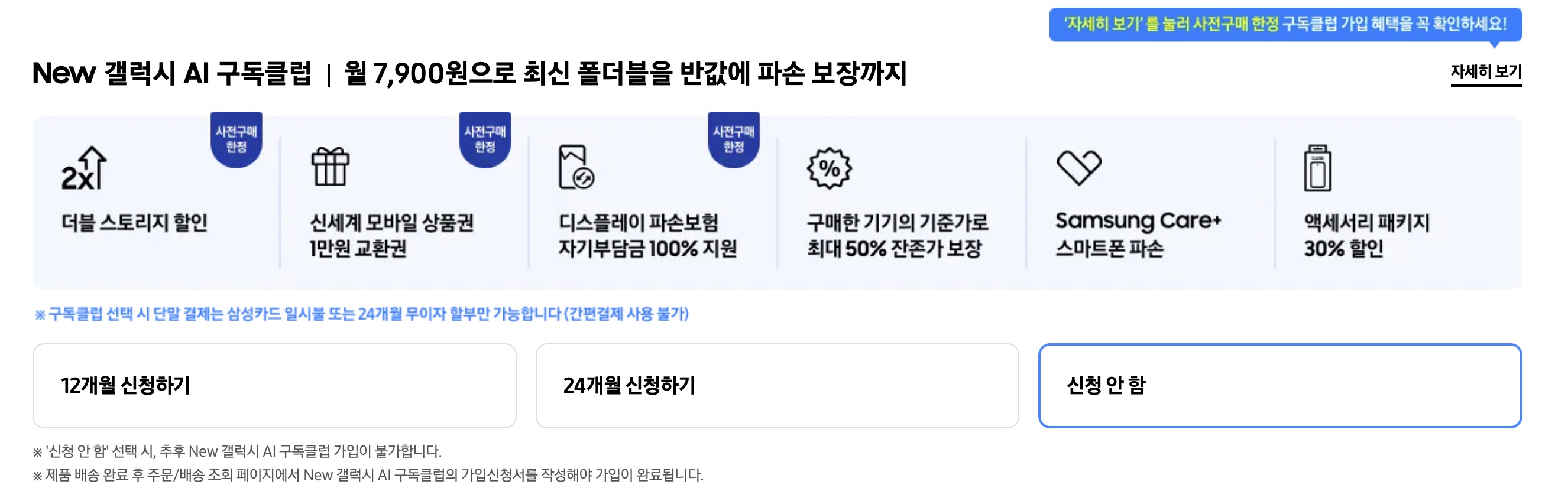 갤럭시 AI 구독클럽은 나는 패스하고 있다. 1년마다 계속 바꾸진 않을 것 같다.