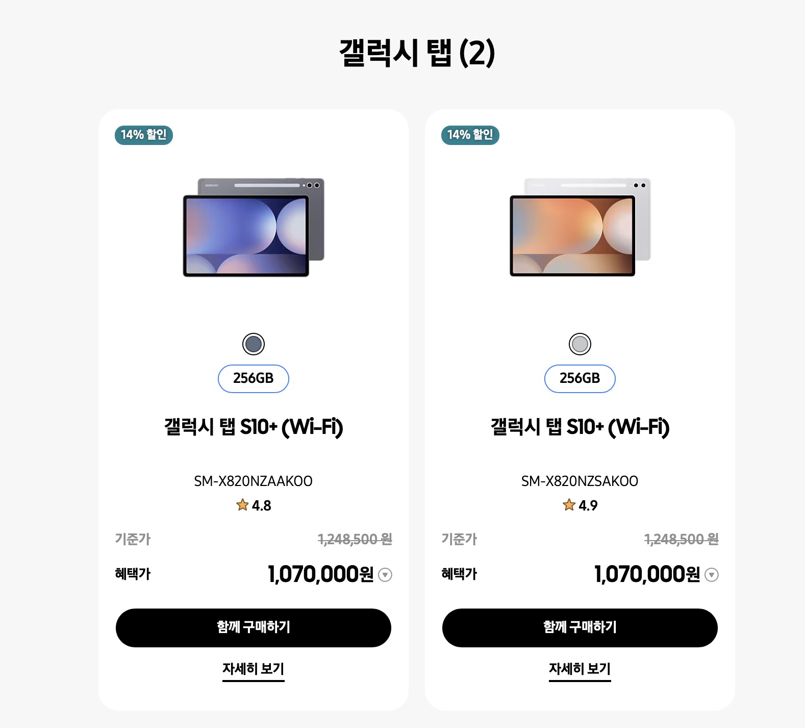 갤럭시 탭도 14% 할인된 가격으로 제시된다. 아이패드를 쓰고 있어서 이 부분도 패스하였다.