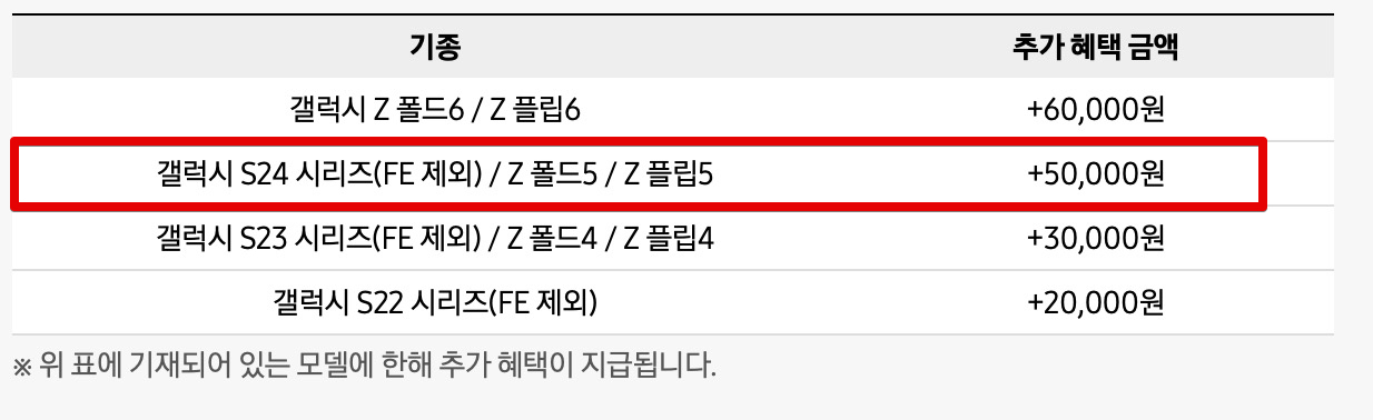 Z플립5의 경우, 6만원은 아니고 최대 5만원을 더해준다. 여기까지 하게되면 5만원 더 할인받는 효과가 난다.