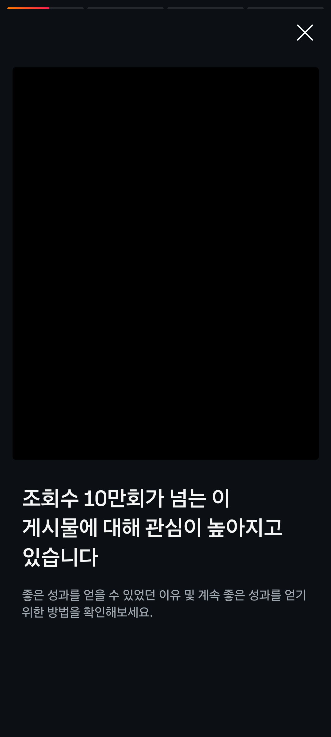 인스타그램에서 게시물 단독으로 10만 조회수를 달성하게 되면 아래와 같은 이미지 추천을 띄워준다. 예전에는 이런 기능 없었던 것 같은데 이제는 10만 조회를 달성한 후에 이렇게 총 4가지의 공식 추천 설명을 알려주는 기능이 생겼다. 이 기능은 인스타그램에서 공식적으로 알려주는 콘텐츠 제작 TIP과 내용이므로 신뢰할만하다.