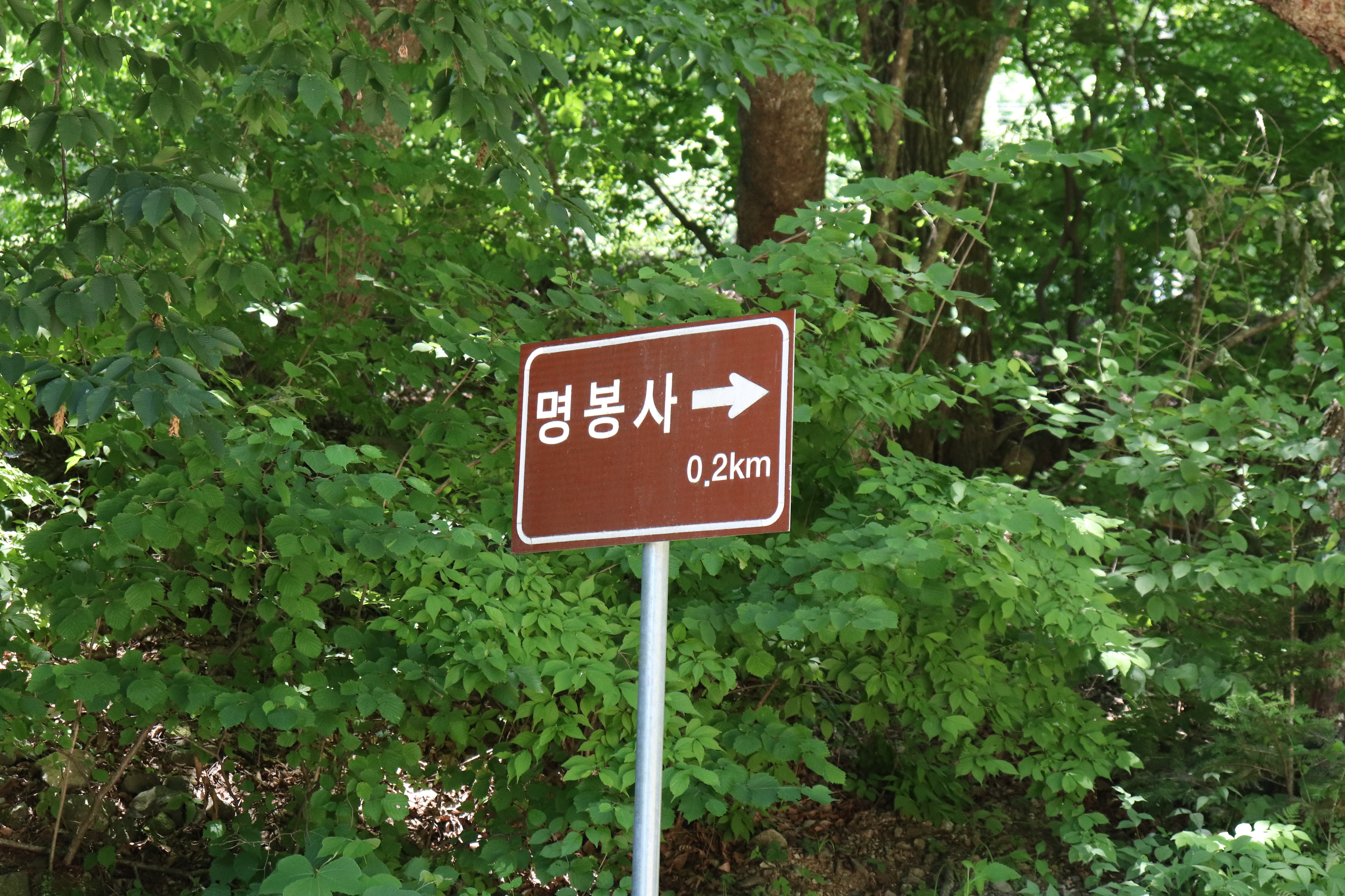 계곡에서 조금 더 들어가면 명봉사쪽으로 갈 수 있습니다. 계곡물 흐르는 소리와 새소리가 어우러진 곳을 지나 명봉사로 가는 길인데 매력적인 여행 스팟입니다. 평소에 도시 생활하면서 쌓인 스트레스가 계곡물처럼 시원하게 씻겨 내려가는 기분이었습니다. 울창한 숲이 태양을 완전히 차단해주고, 계곡에서 올라오는 찬 공기가 자연 에어컨 역할을 하니까 에어컨 없이도 충분히 시원하게 지낼 수 있는 길이었습니다. 도시에서는 상상할 수 없는 자연의 힘이라고나할까요.
