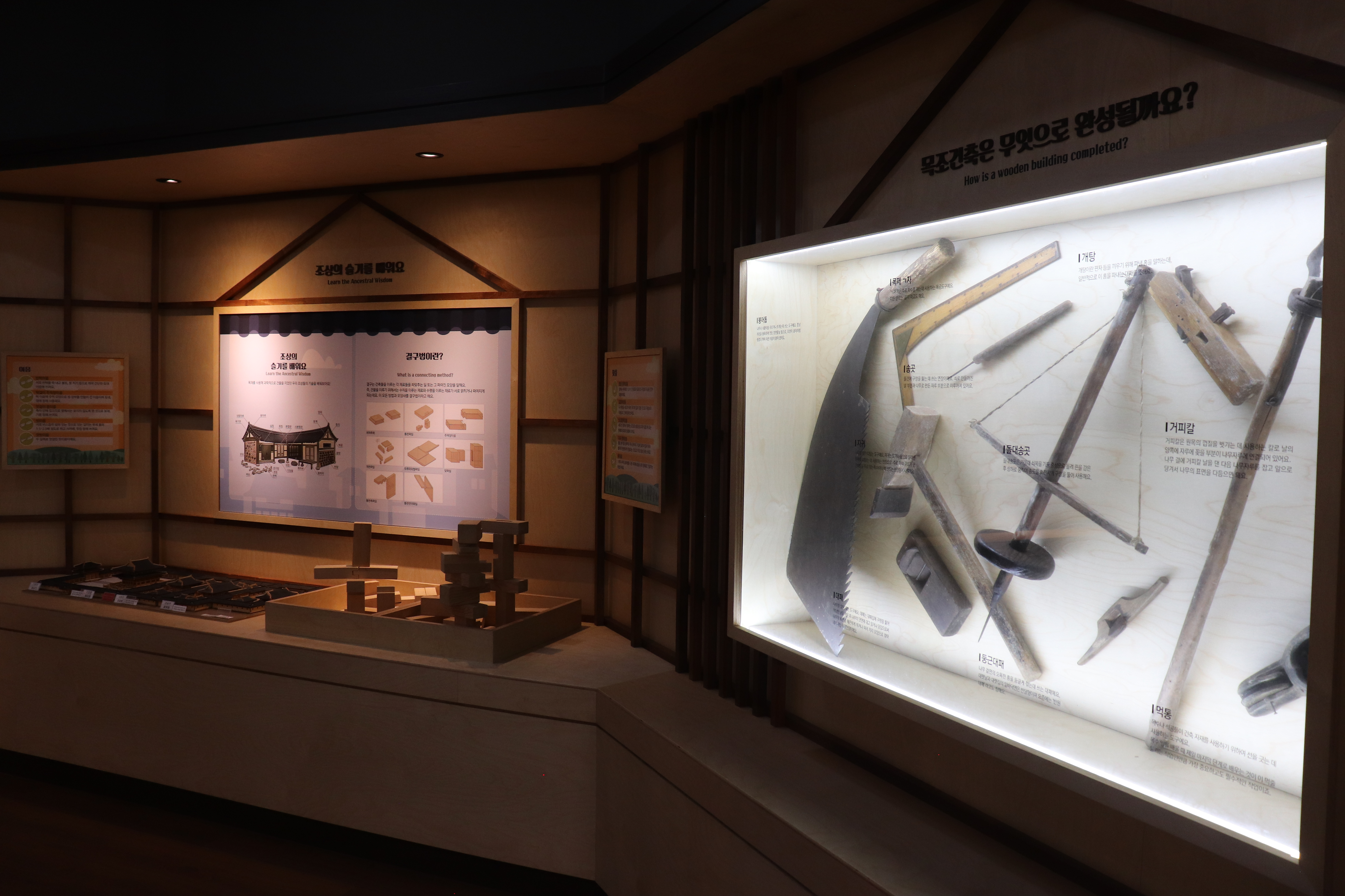 목재와 건축 쪽에서는 목재를 활용한 건축에 대해 집중적으로 살펴보는데 재미있는 학습 공간입니다.