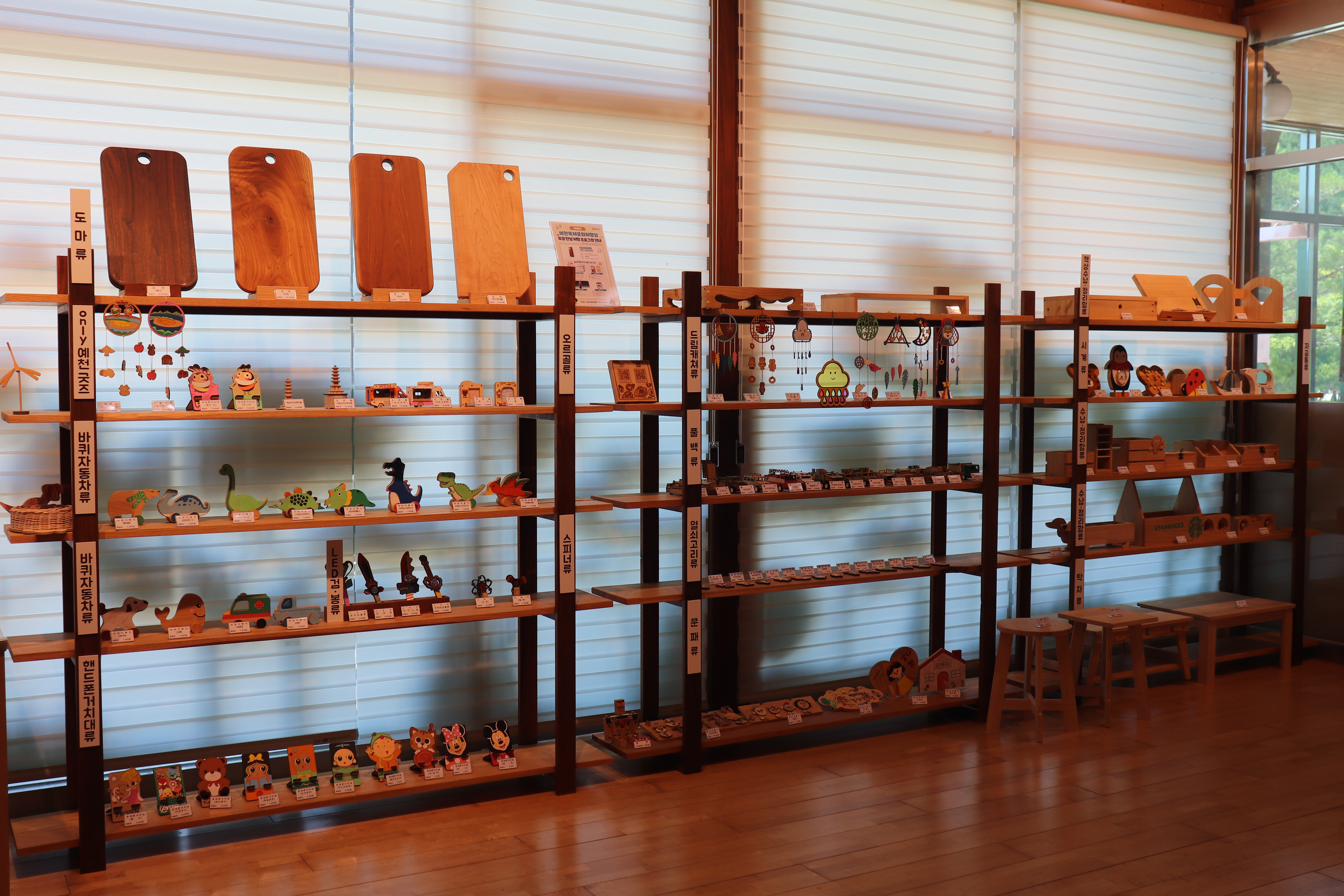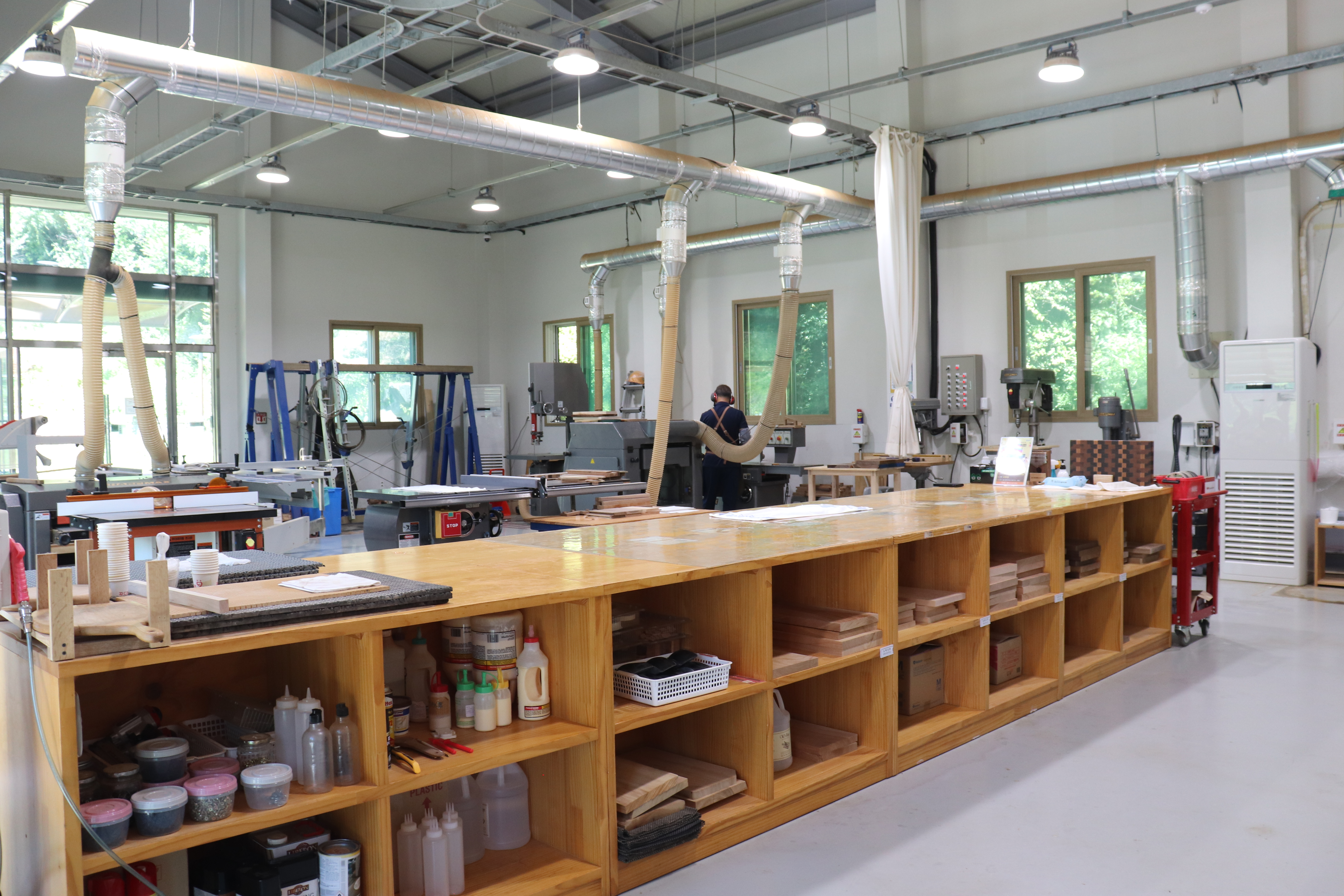 목공 교육장도 있어서 잠깐 둘러보았습니다. 다양한 목공 도구와 재료들이 준비되어 있어서 직접 나만의 작품을 만들어볼 수 있는 공간입니다.
