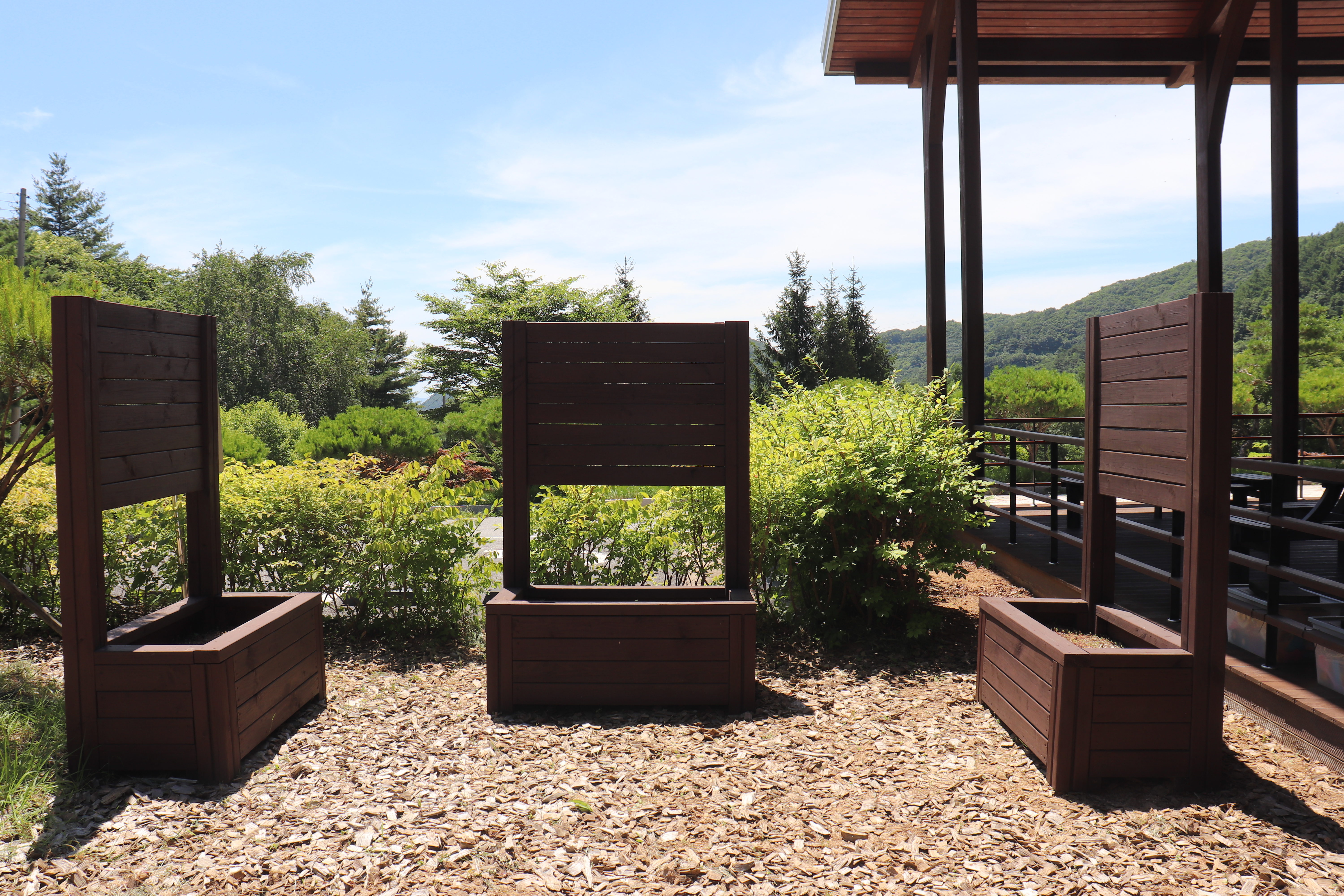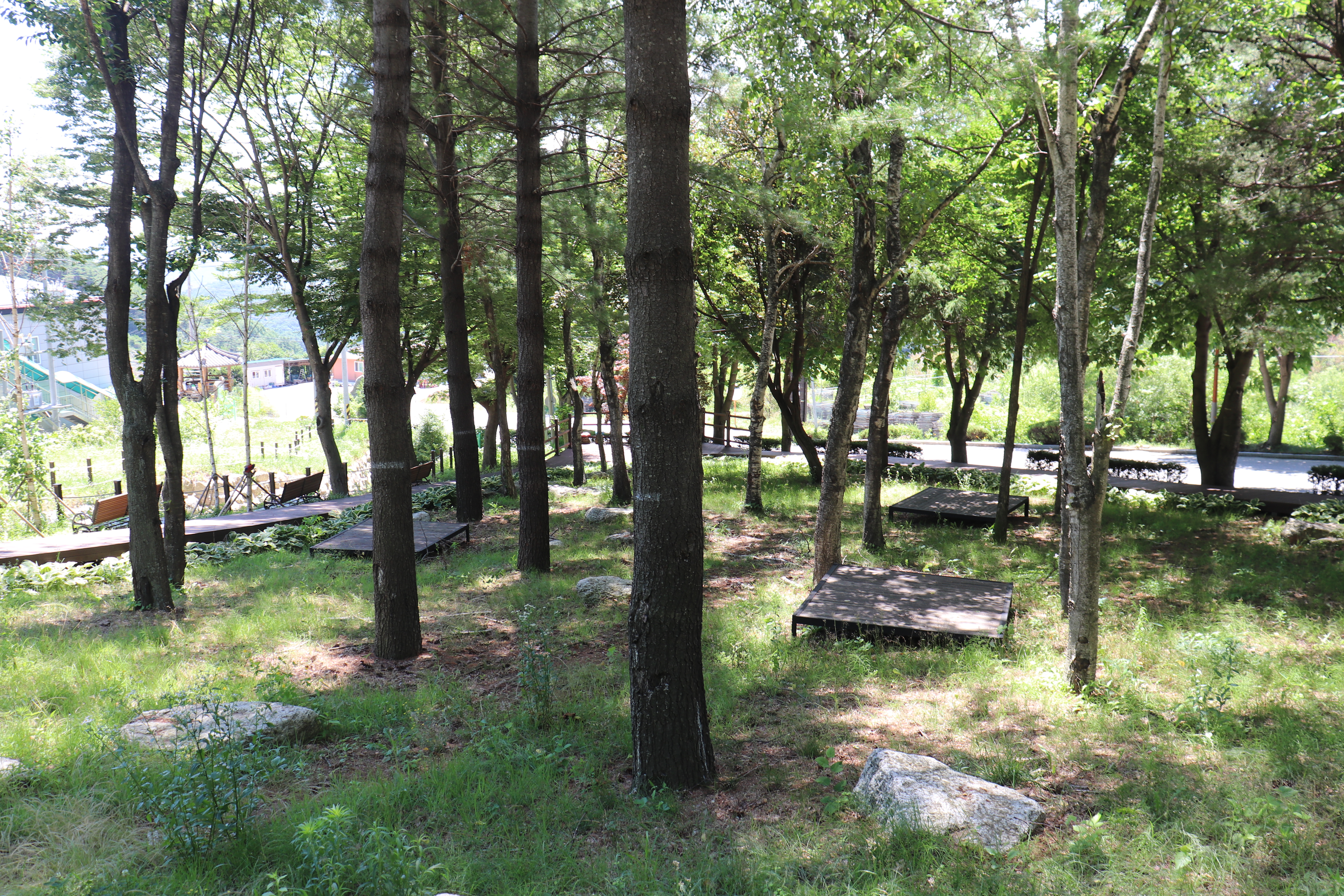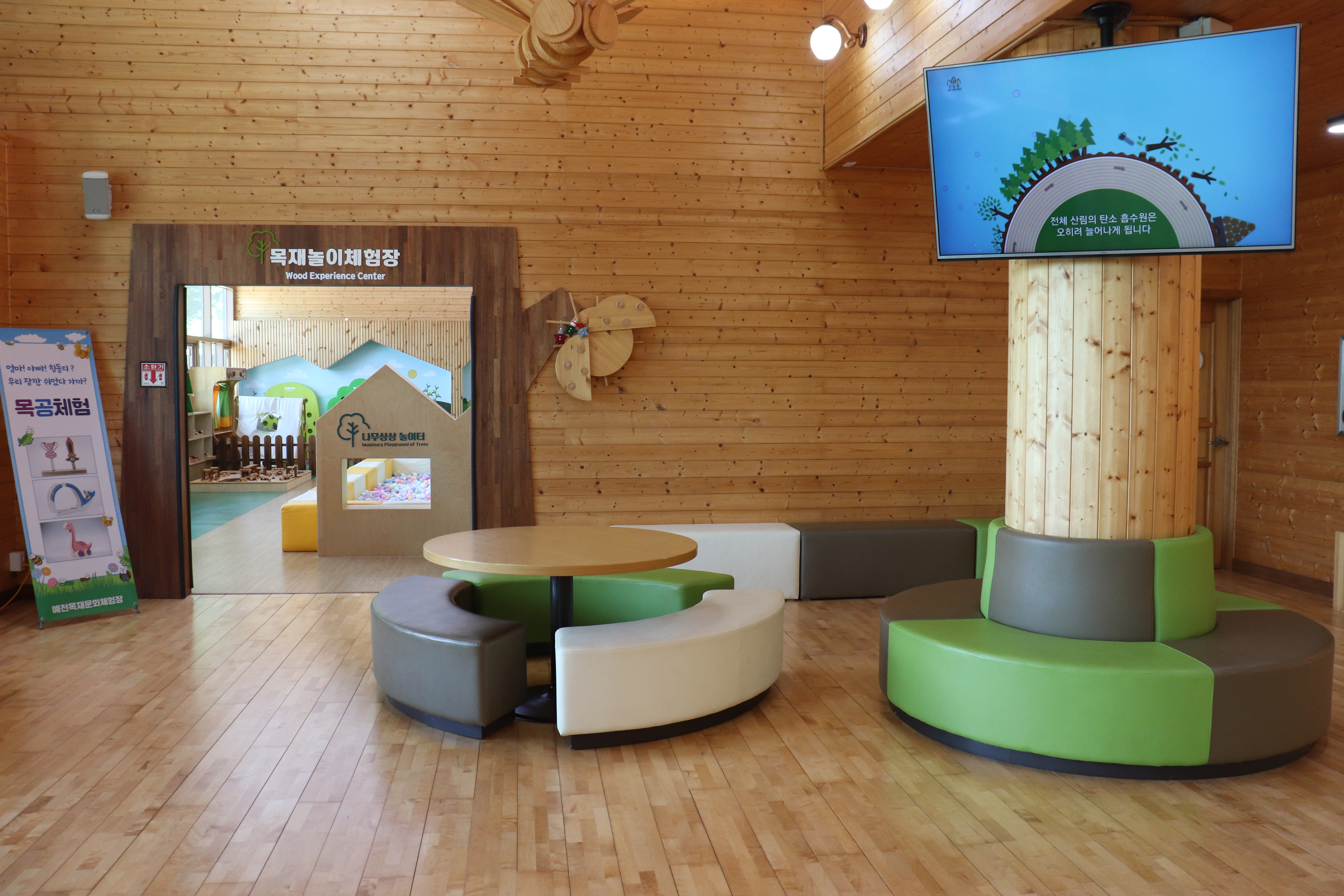 이쪽에는 아이들이 좋아할만한 놀이터 시설이 있고 목재와 함께하는 다양한 시설들을 볼 수 있었습니다.