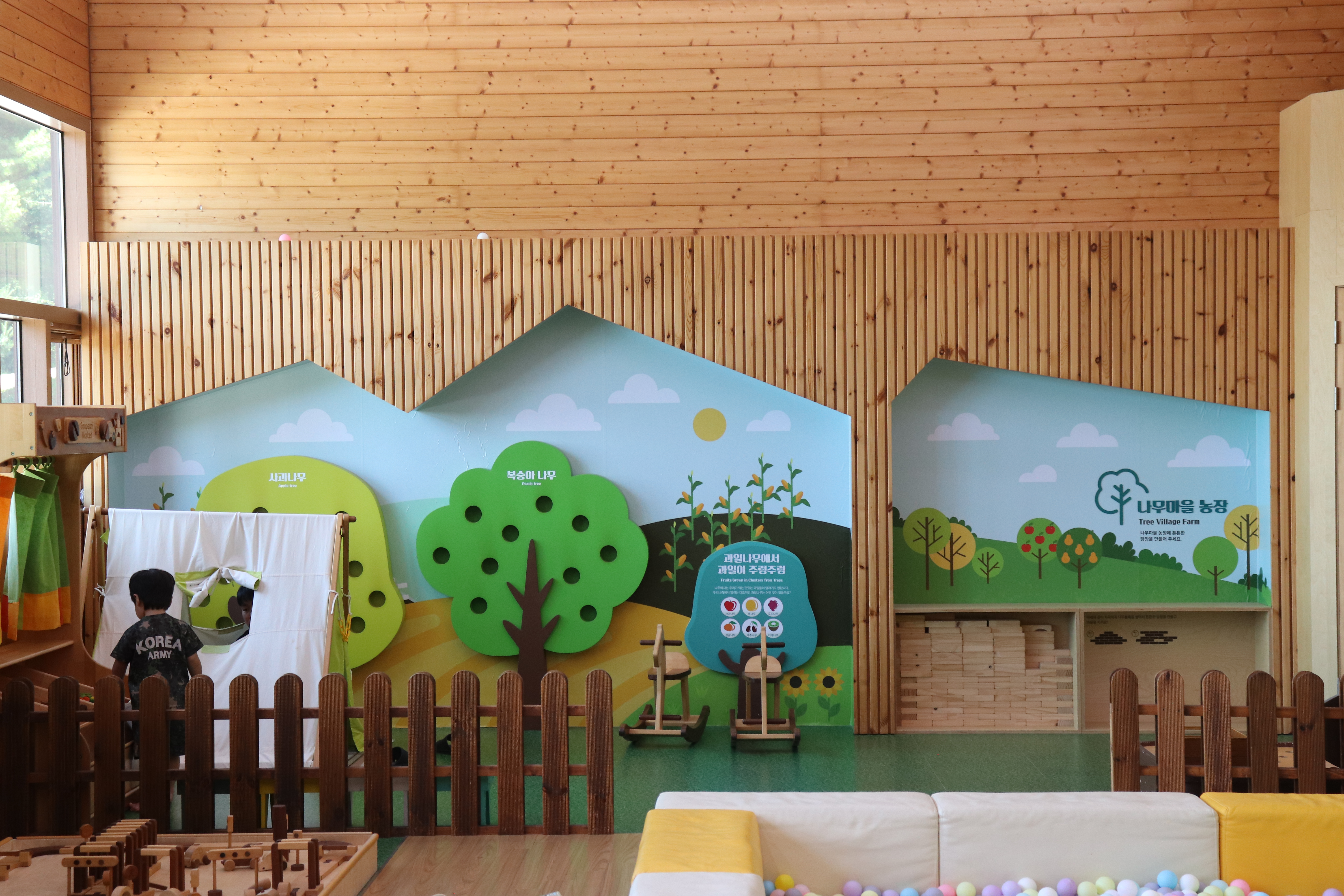 아이들이 좋아하는 다양한 놀이가 준비돼 있습니다. 자연스럽게 나무와 자연에 대해 배울 수 있는 공간들이에요.