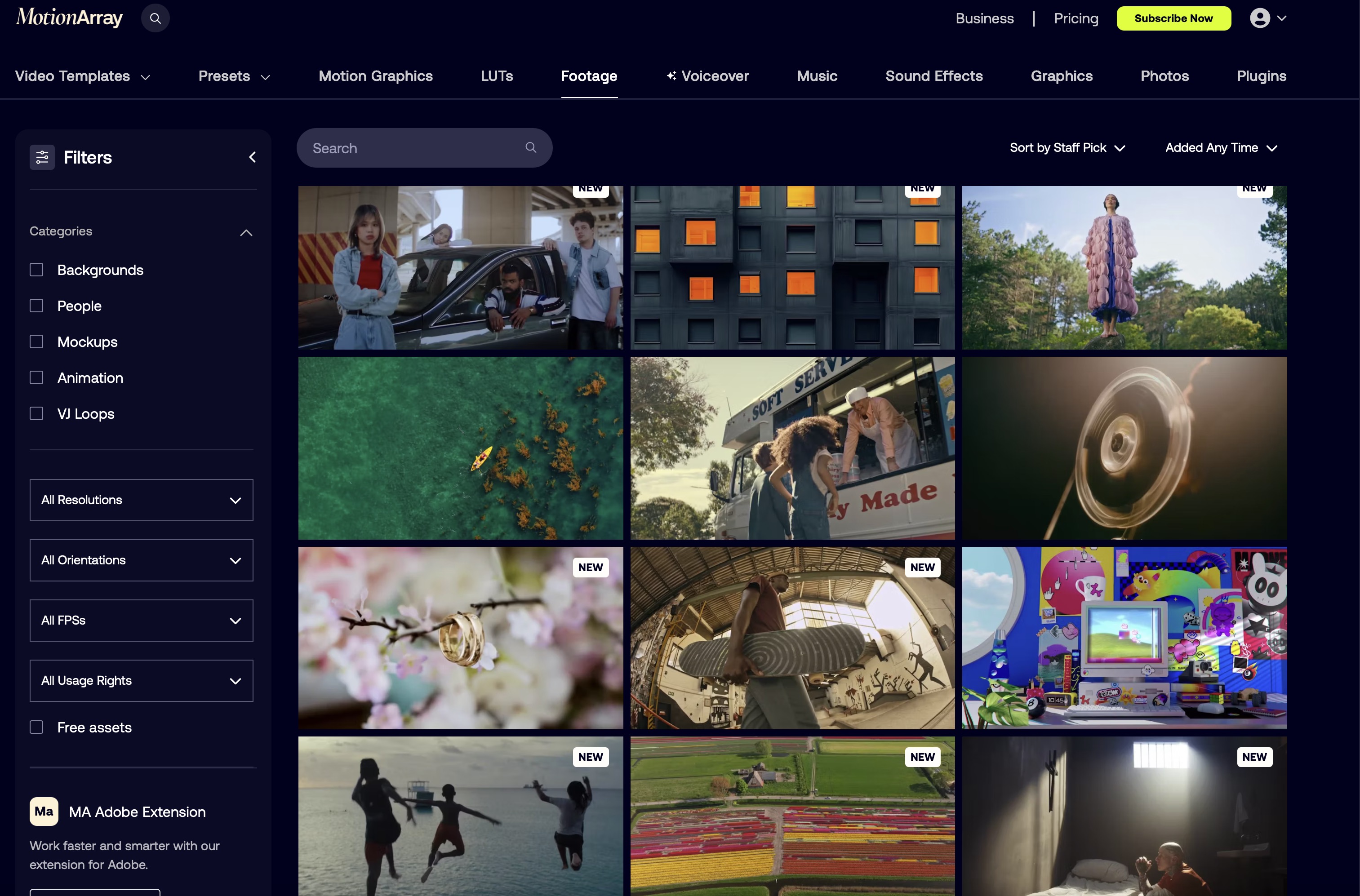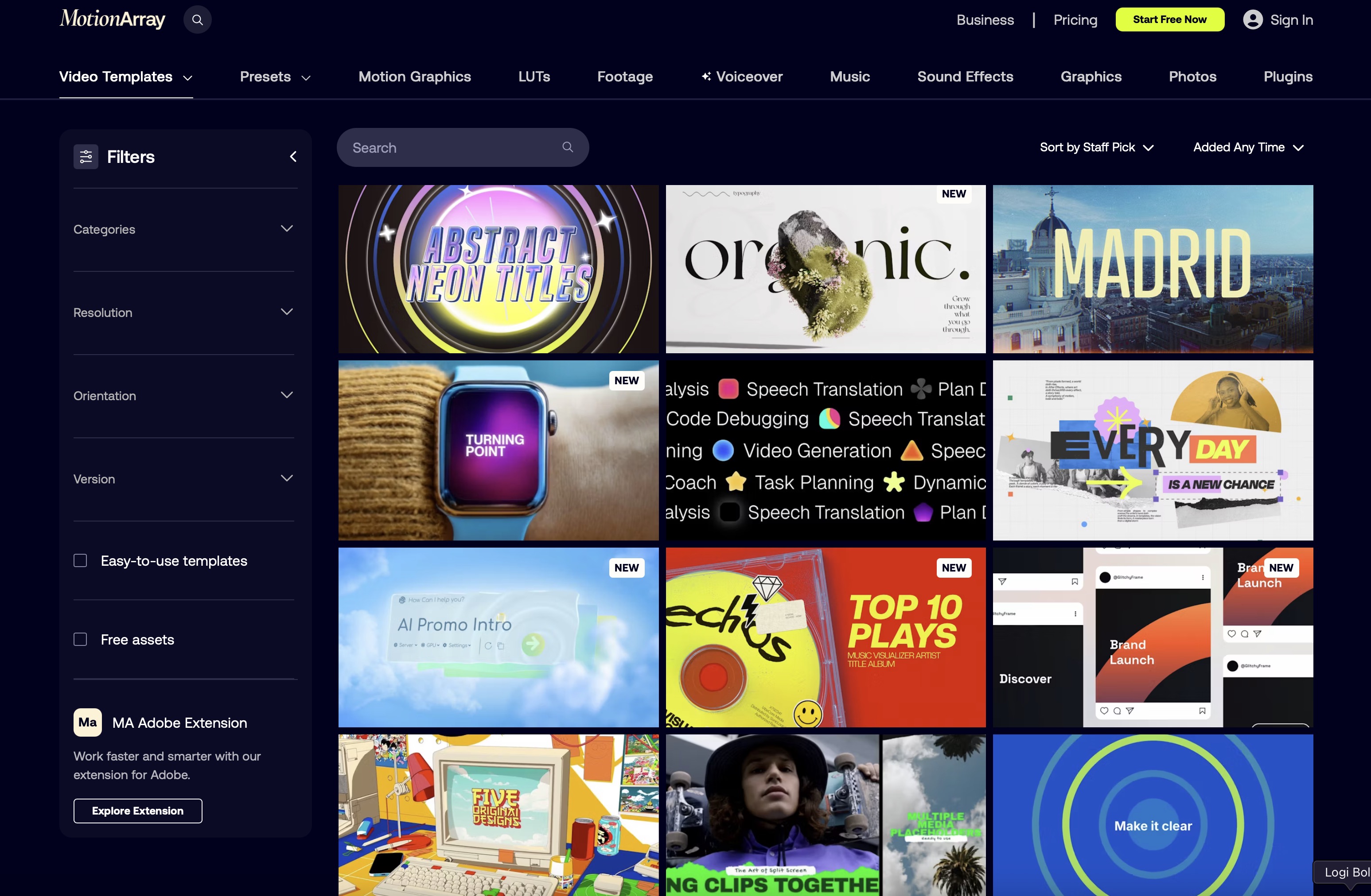 - Motion Array 홈페이지에서 확장 프로그램 다운로드