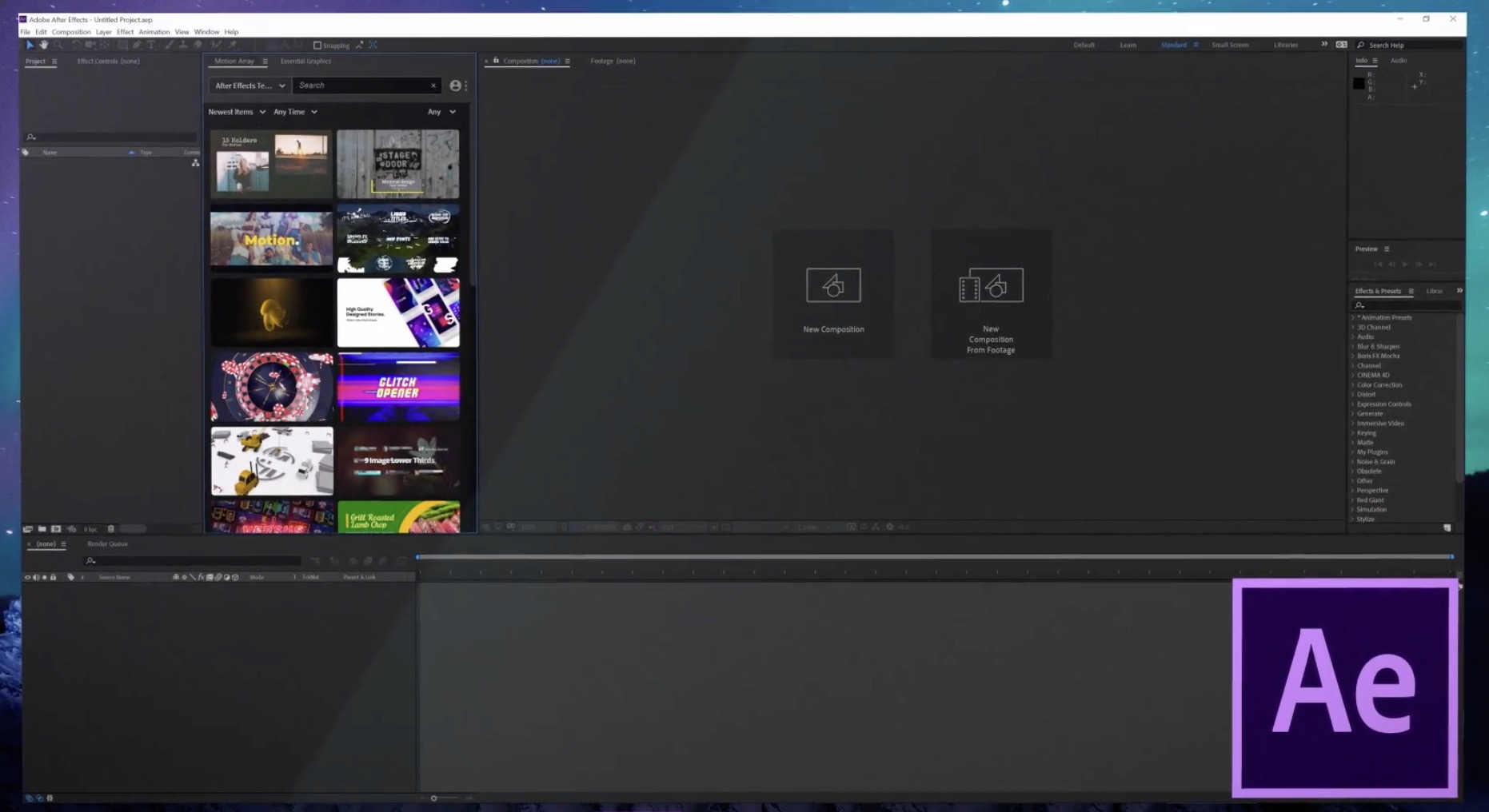 이 기능을 활용하면 프로그램을 벗어나지 않고서도 모션어레이에 있는 다양한 템플릿들에 접근이 가능합니다. 번거롭게 인터넷 사이트와 프로그램을 왔다갔다 하면서 작업할 필요가 없습니다!