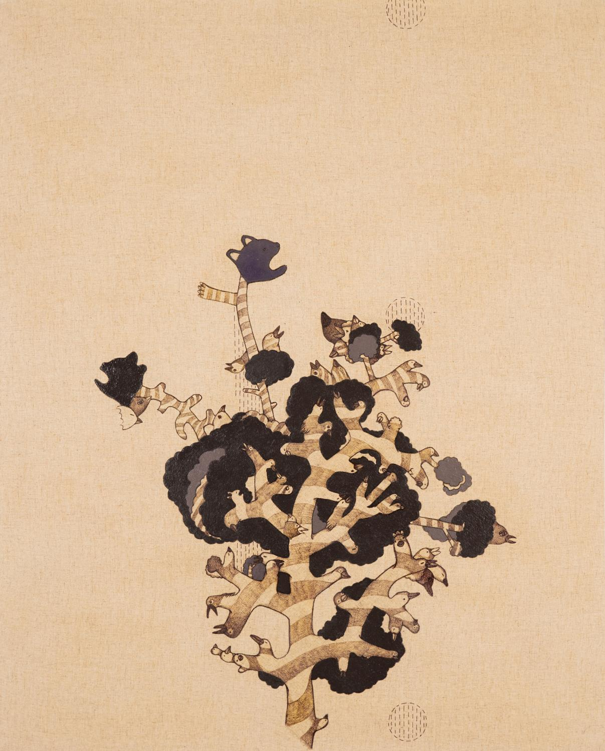 박보정 작가의 작업 방식도 독특해서 관심이 가는데요. 평범한 일상 속 이미지와 자연의 변화를 캔버스에 콜라주하고, 꿈길처럼 어긋난 파편들을 재배치해서 기억의 공간을 구축한다고 합니다. '달팽이 집'처럼 기억을 이고 나아가는 존재로서의 자아를 탐구한다고 하는데, 달팽이가 자신의 집을 등에 지고 다니듯이, 우리도 우리의 기억과 경험을 안고 살아간다는 의미인 것 같습니다. 그리고 일상과 비일상, 삶과 죽음, 생성과 소멸의 순환적 의미까지 다룬다고합니다.
