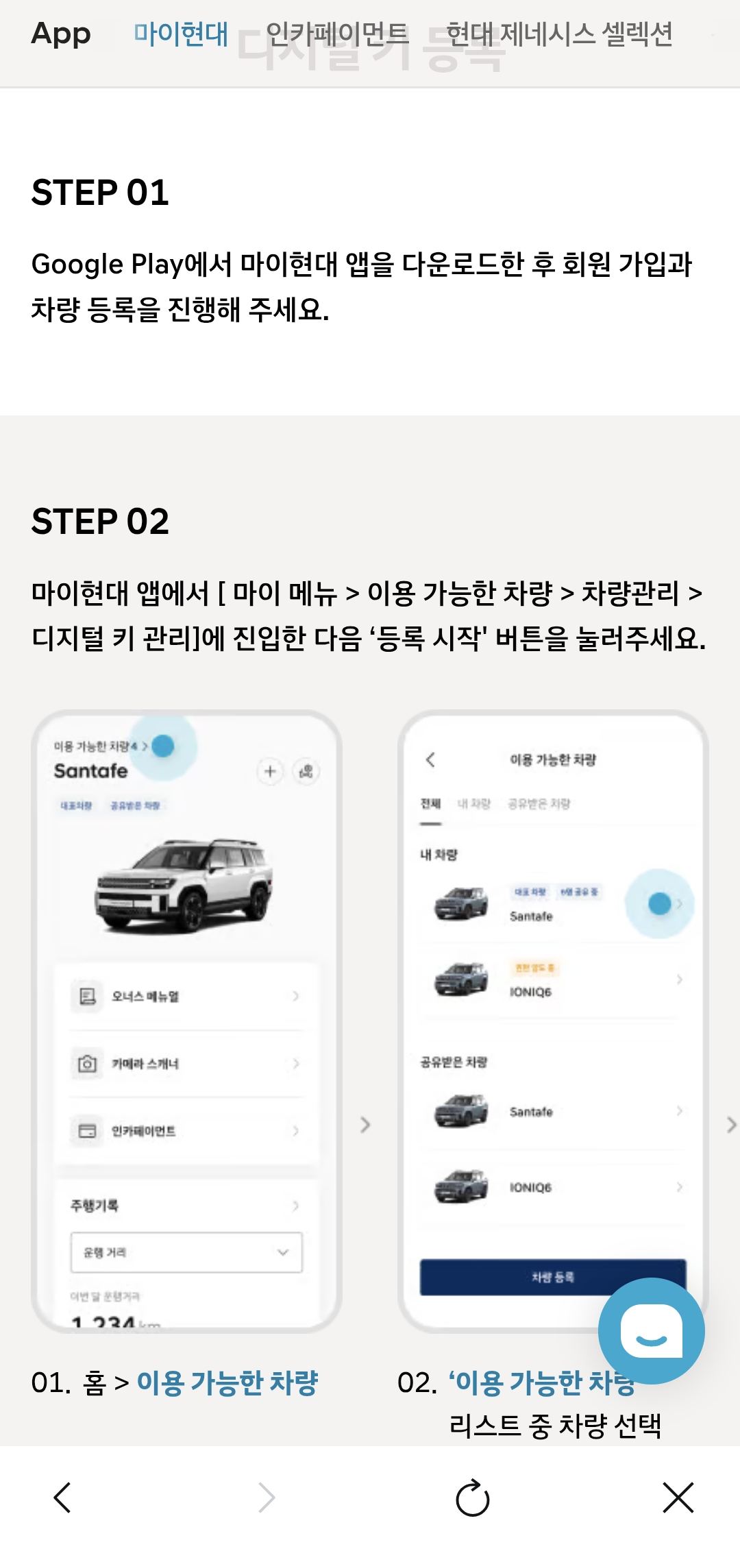 마이현대 앱에서 <홈> 메뉴에서 스크롤을 밑으로 죽 내려서 3번째 칸에 보면 디지털키의 모든것이라고해서 간단한 안내를 해주는게 있다.