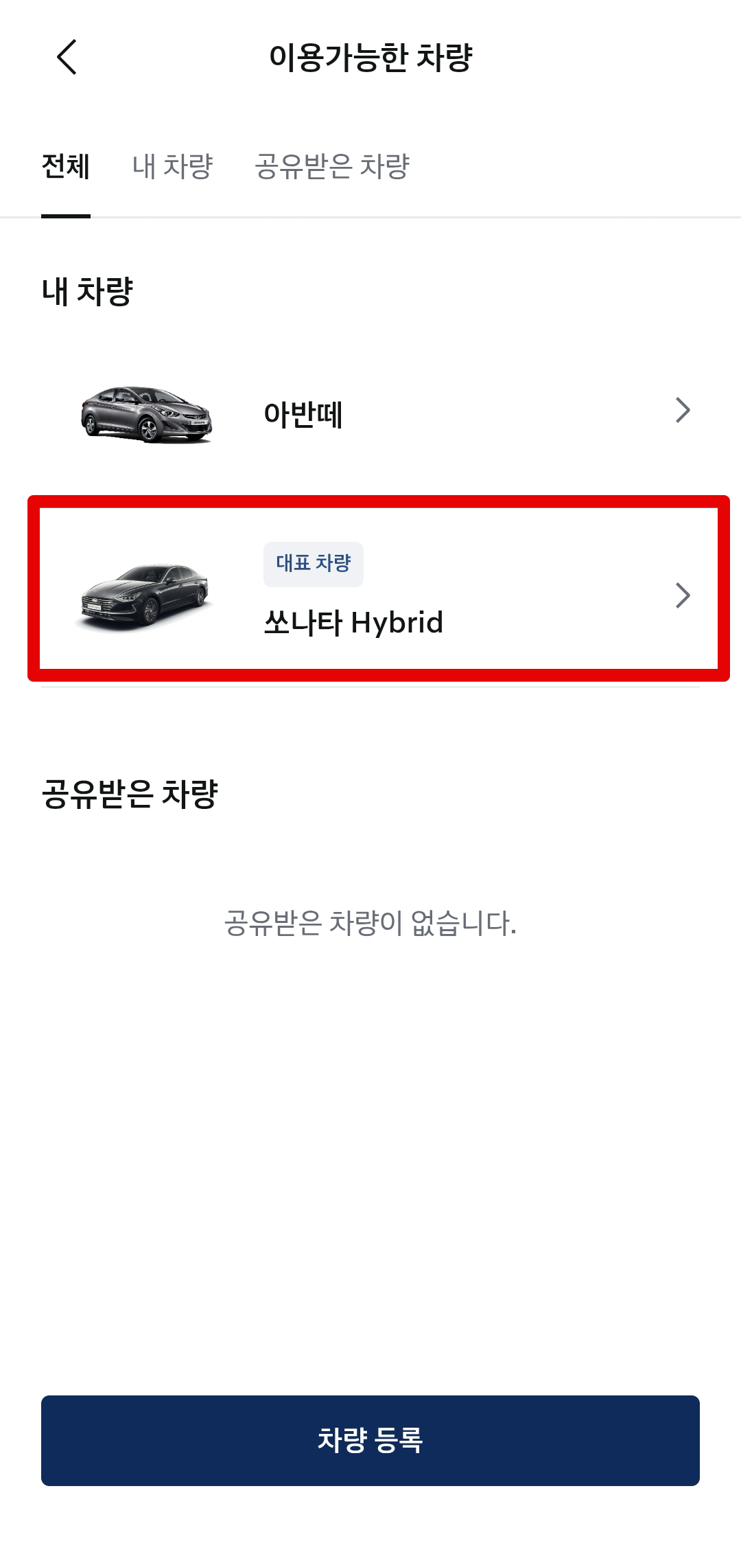 <마이현대> 앱에서 첫 화면에 들어가면 제일 위에 차량이 보이는 곳이 있다. 저기에 있는 차를 눌러서 메뉴로 들어가야한다. 그런데 이 방식은 좀 직관적이지 않은것 같다. 저기 차를 눌러야한다는 인식 자체를 못하는 상황이다...ㅋㅋ 눌러야되는지도 몰랐다.