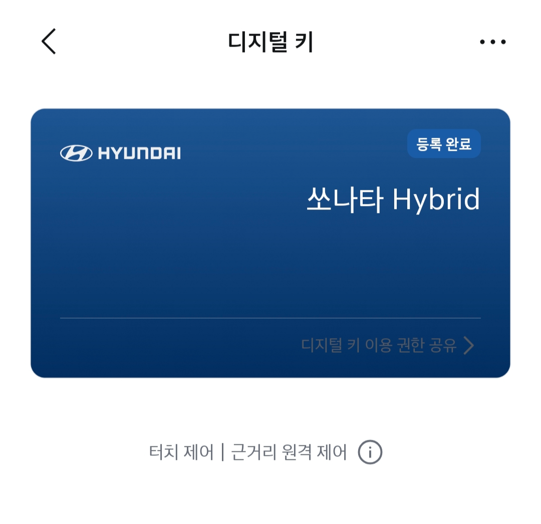 모두 등록되면 마이현대 앱에 이렇게 디지털 키가 보인다. 차 키 집에 놔두고 폰만 들고 다시 차로가서 테스트. 문 잘 열리고 시동 잘 걸리고... 문 잘 닫힌다. 끝.