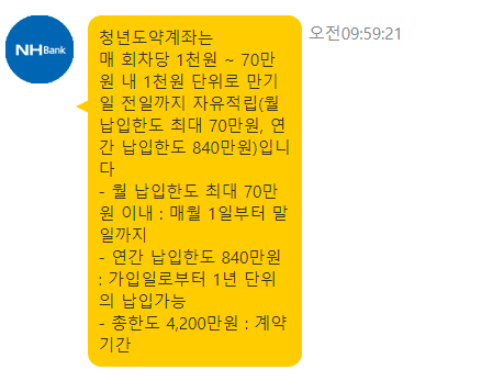 오늘 농협 채팅상담으로 관련된 내용을 다시 한 번 확인차 물어보았다.
