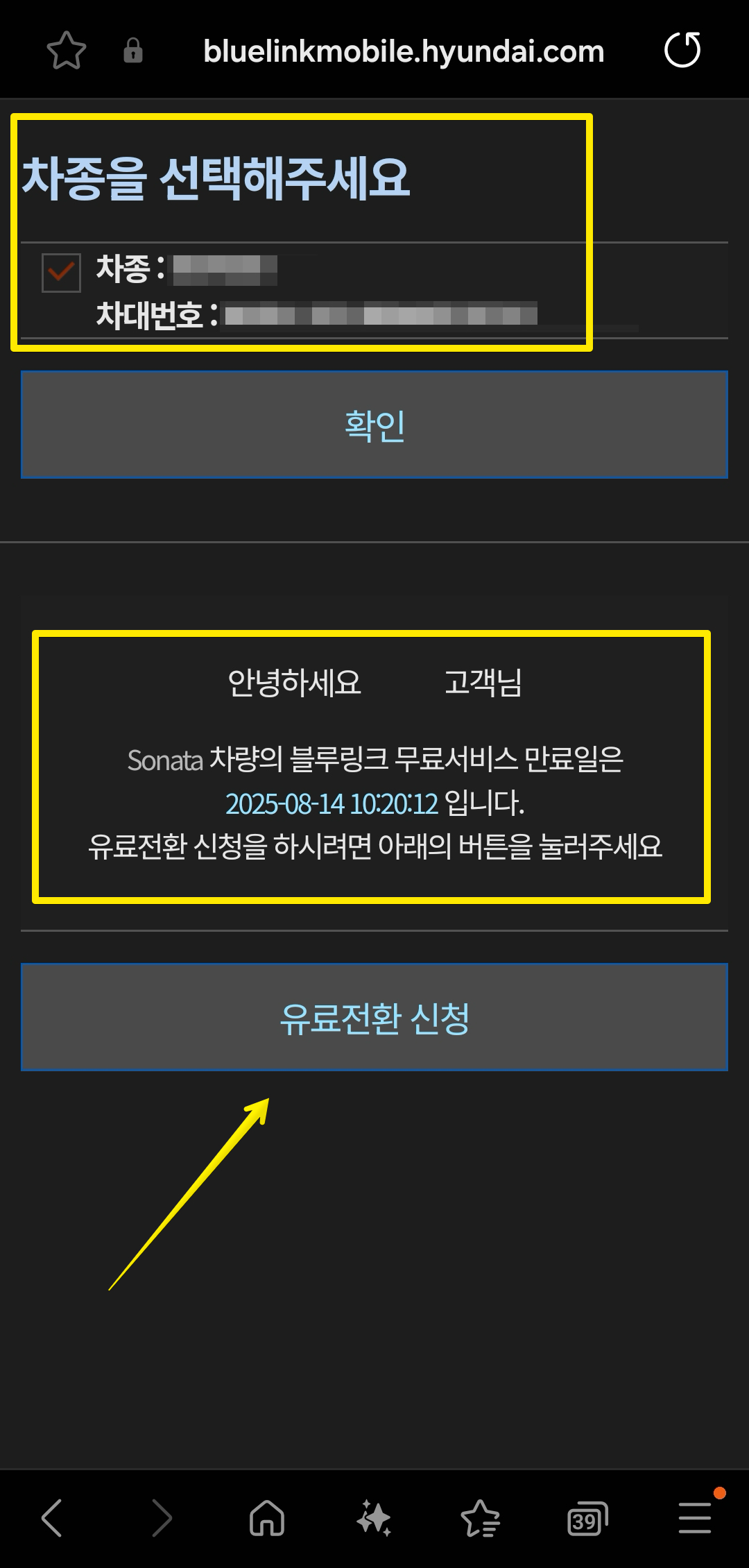 마이현대 앱에서 블루링크 유료전환 하는법
