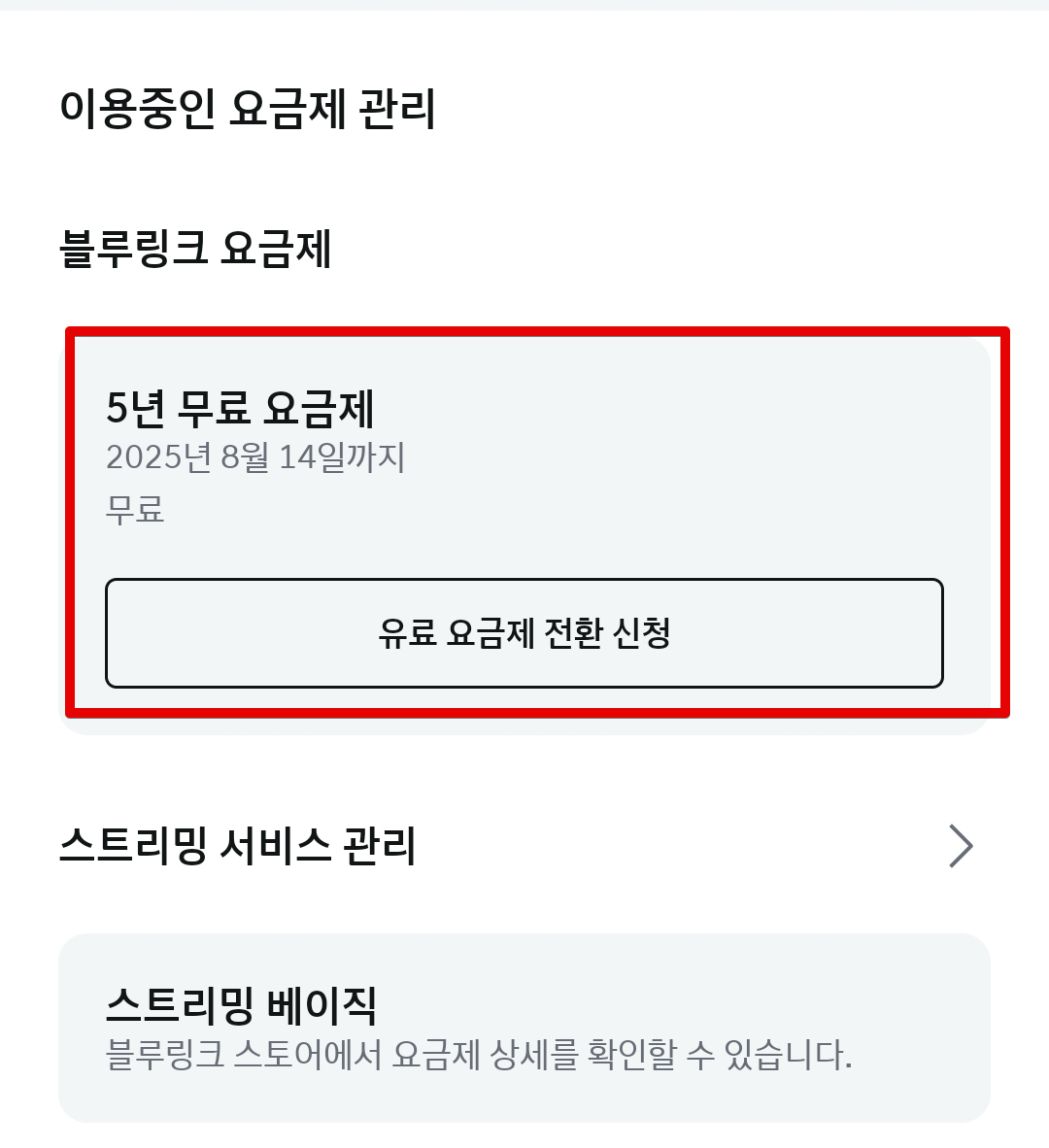 아무튼 다 하면 유료전환 신청 완료. 그런데 처음 결제 신청 및 유료전환 신청할 때 휴대폰 요금으로 결제하는 방식이 없어가지고 일단은 신용카드로 먼저 결제 신청했고 1:1 문의로 휴대폰 결제로 바꿀 수 있는지를 문의해놓은 상황이다. 답변오면 진행 후 이 글 밑에 또 후기 남겨보겠다.
