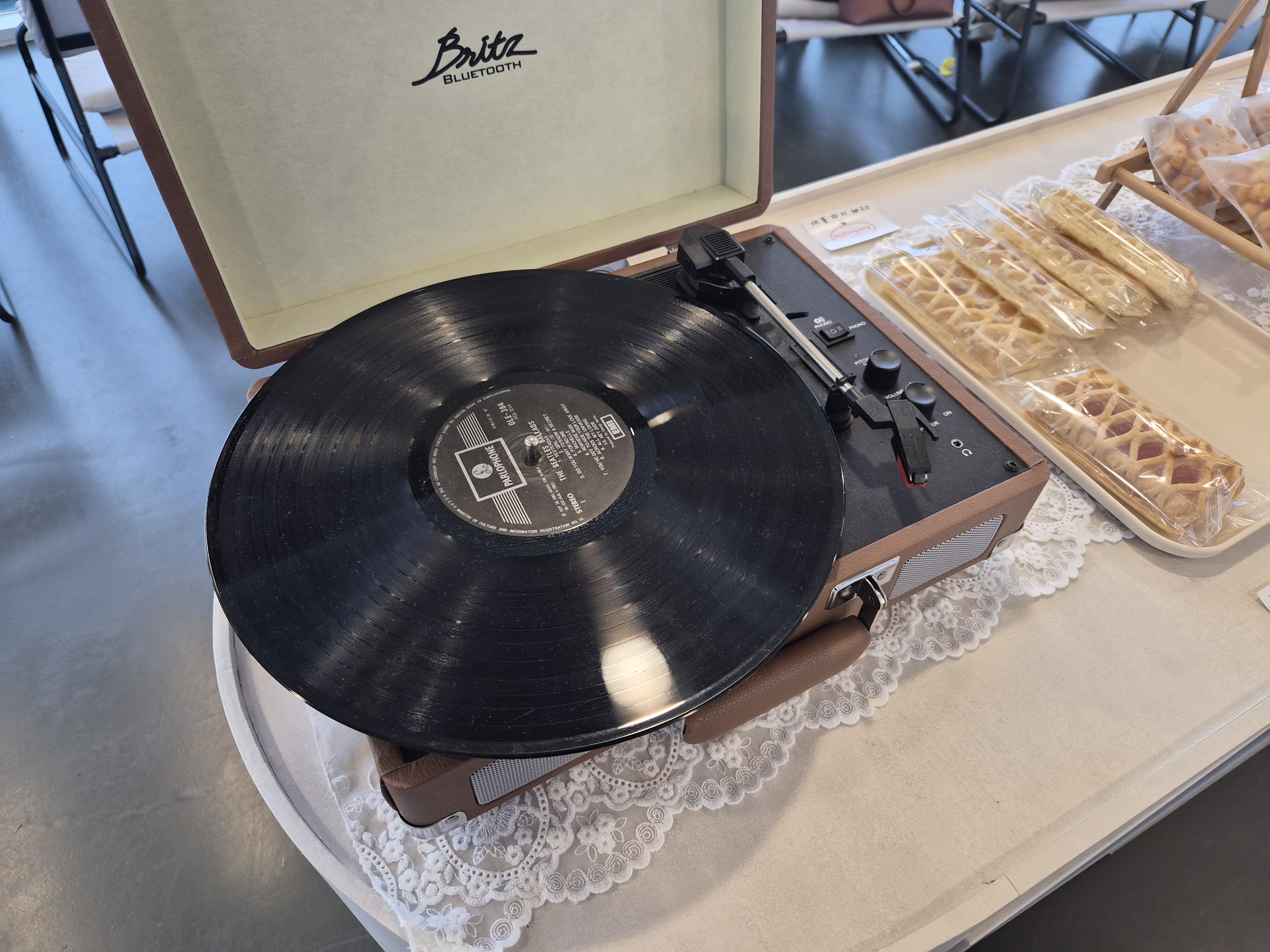 카페 입구에는 옛날 LP판이 있었어요. 실제로 카페 내부에서 오래된 예전 노래들이 흘러나오곤 했는데 음악이 정말 좋았습니다. 애플향 카페 분위기와도 잘 어울렸고요.