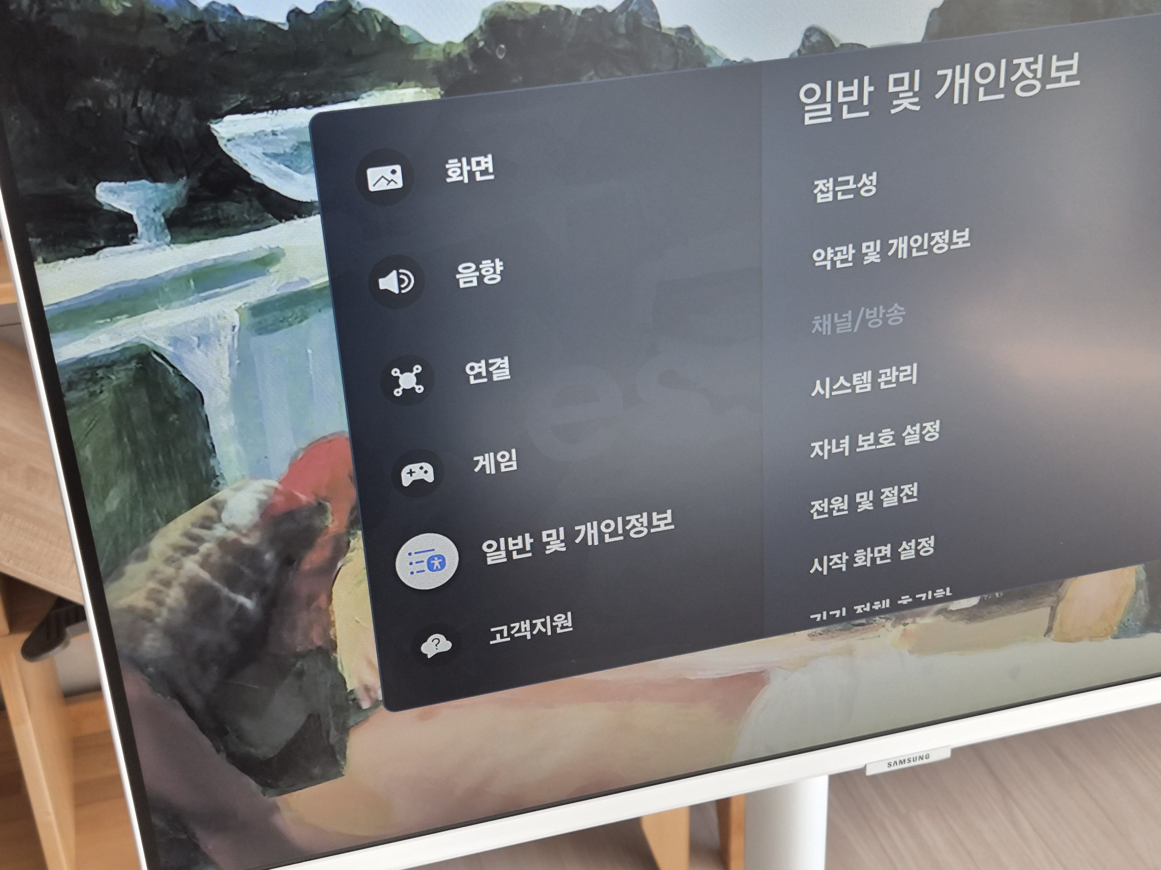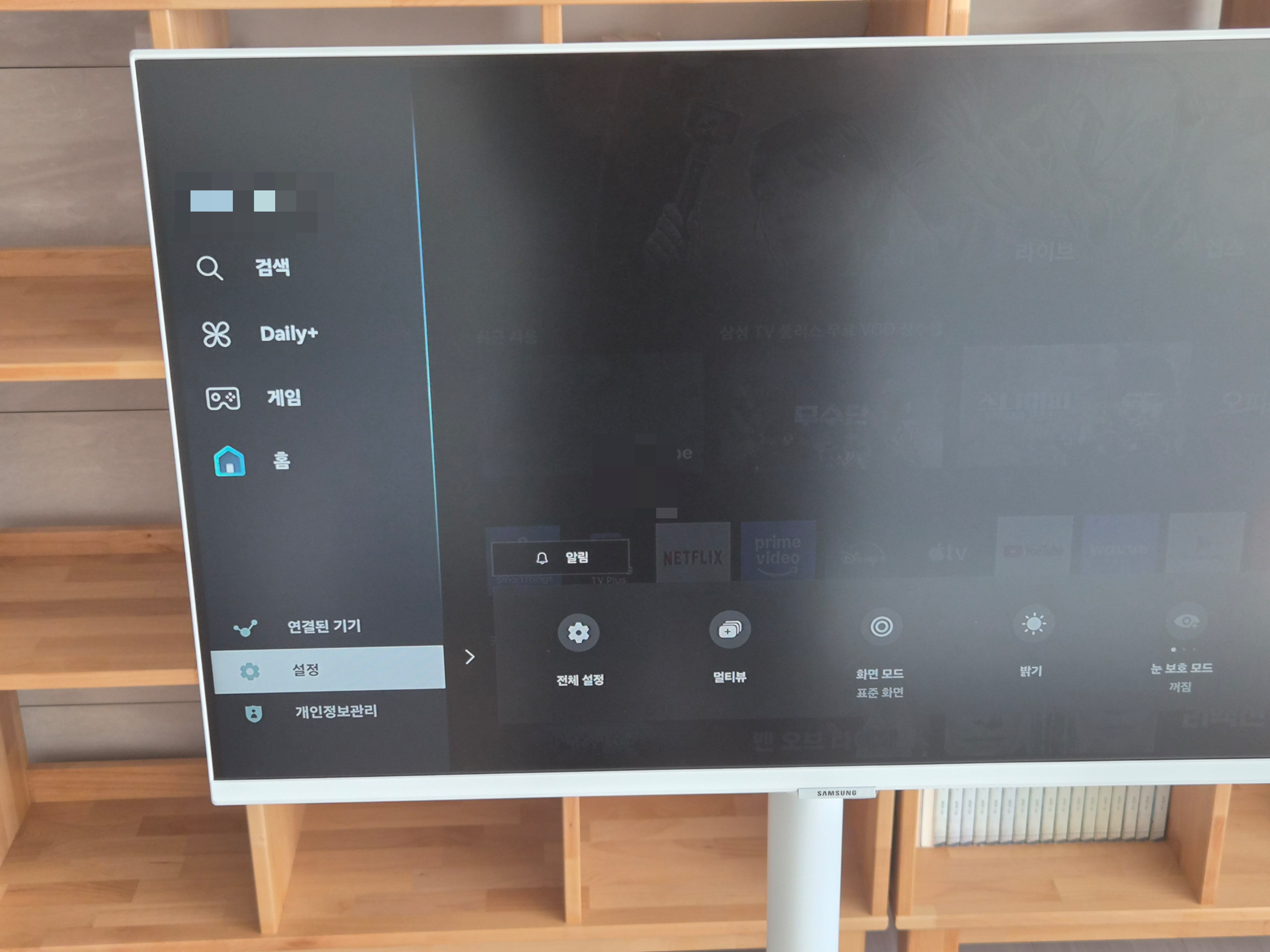 일단 삼성스마트모니터인 삼텐바이미에서 리모컨으로 <설정>으로 들어간다.