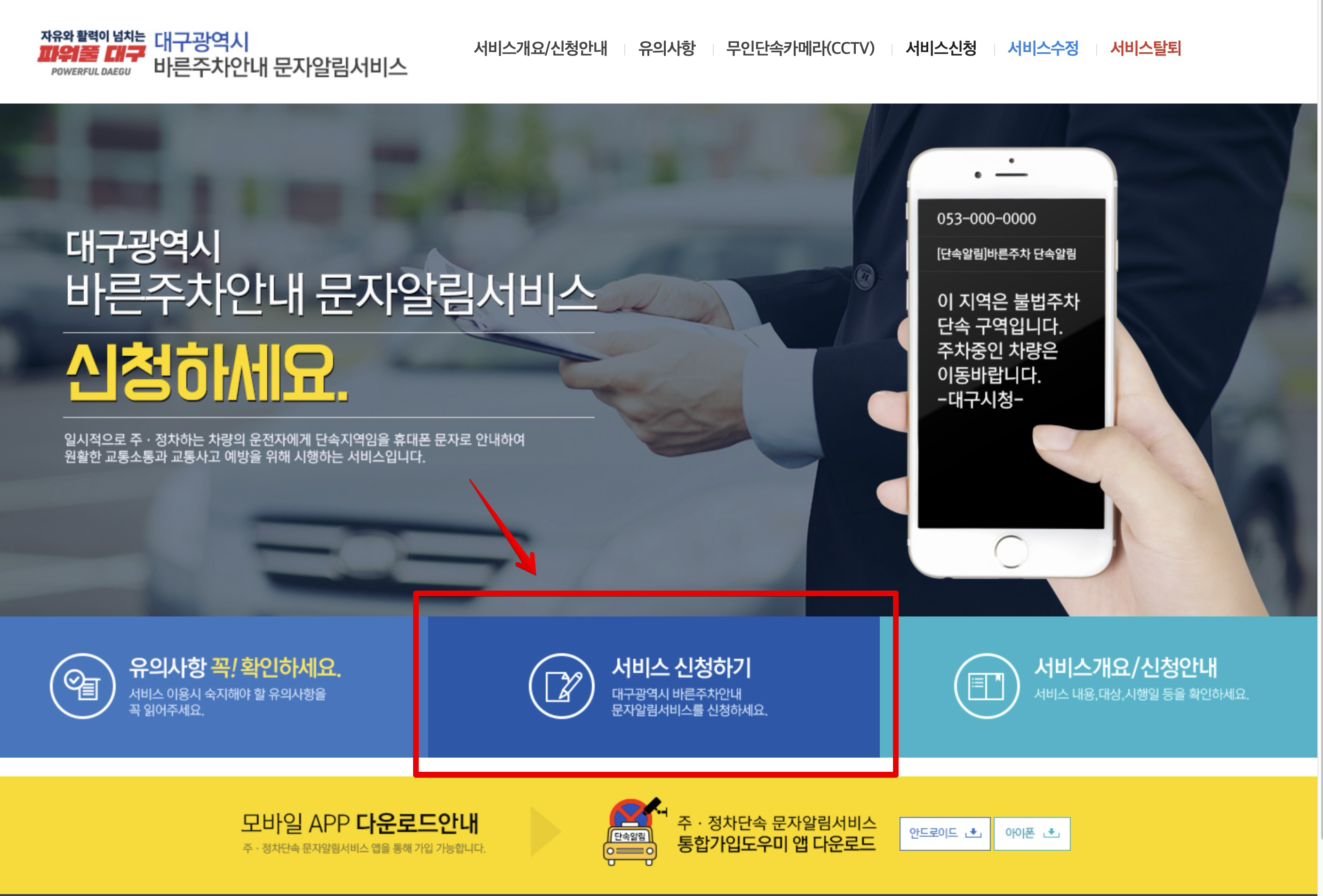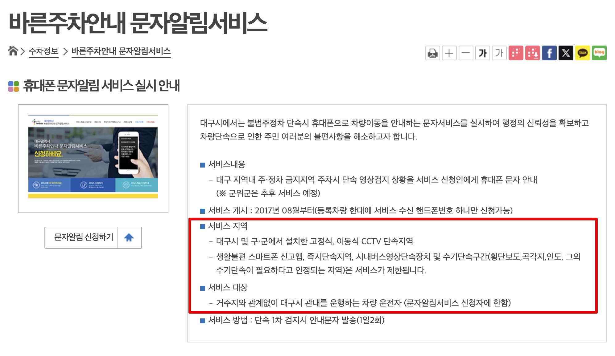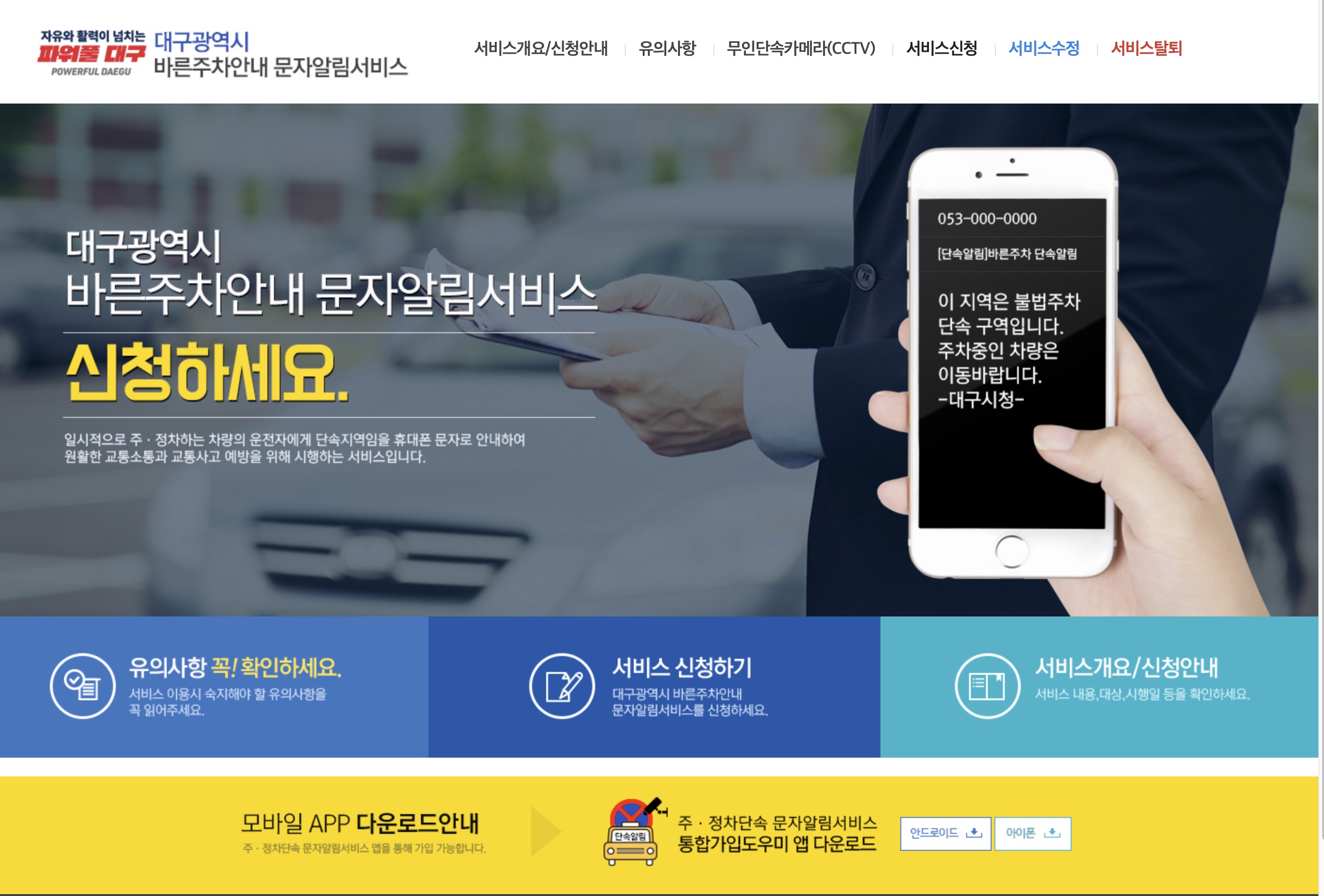 대구시 바른주차,대구시 문자알림, 주정차단속알림서비스