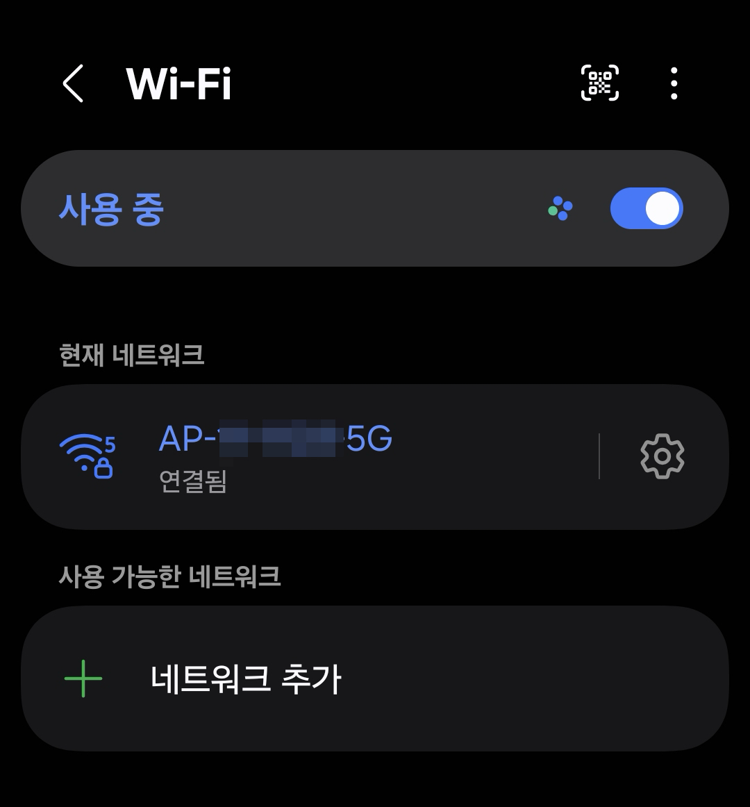 와이파이 잘 된다... 와이파이 이름은 동-호수 이렇게 돼 있고 5G가 있고 일반이 있다. 로봇청소기나 세탁기, 냉장고 같은 것들은 5G가 아닌 일반 와이파이로 잡아야하는걸로 알고 있고 지금도 폰에 그렇게 해두고 있다. 그런데 이걸 또 연결해서 쓰려면 폰도 일반 와이파이를 잡아야하는데 이참에 집안에 있는 가전제품들도 몽땅 거실 천장 AP로 바꿔야하나 고민 중...ㅋㅋ